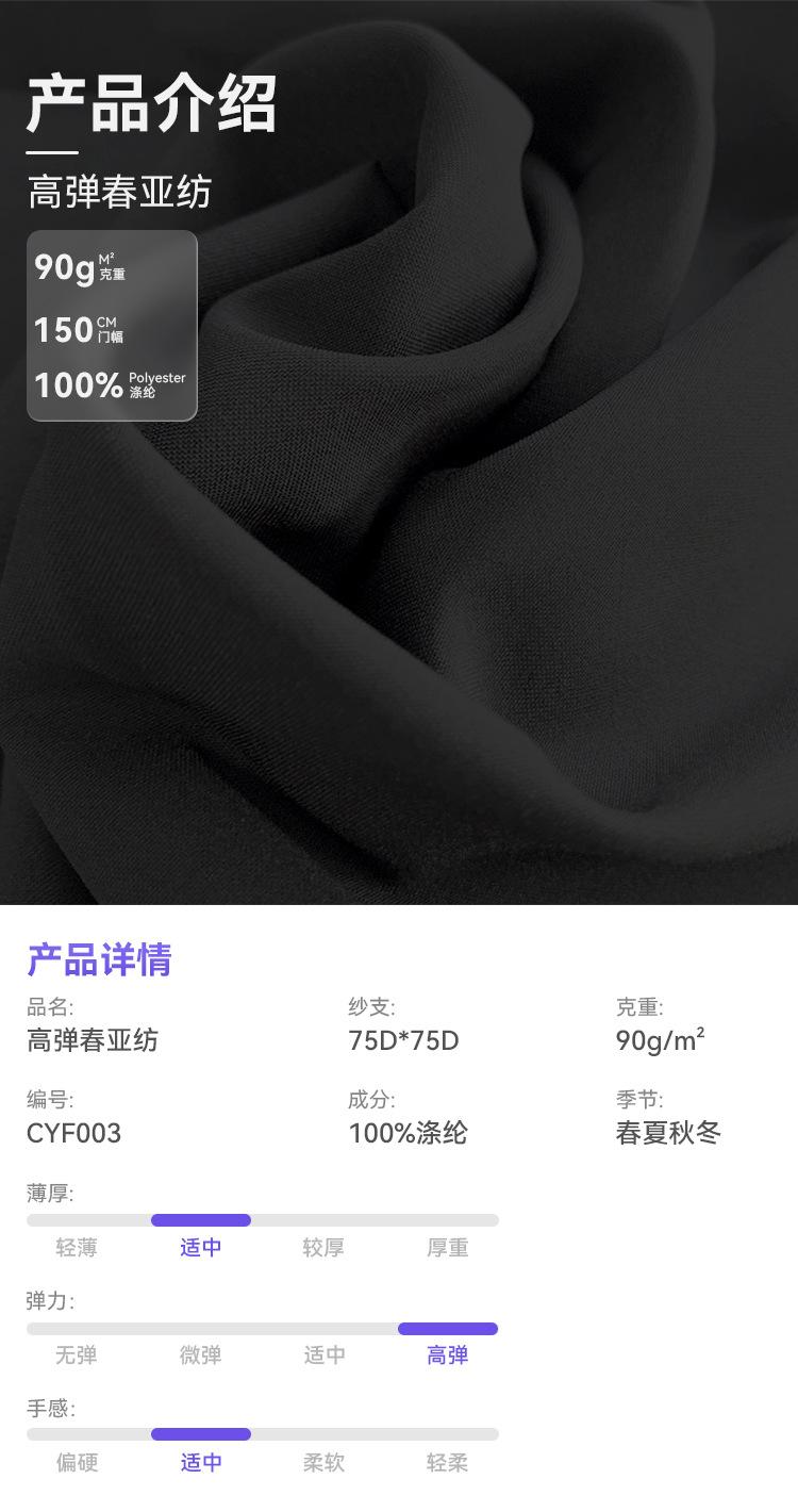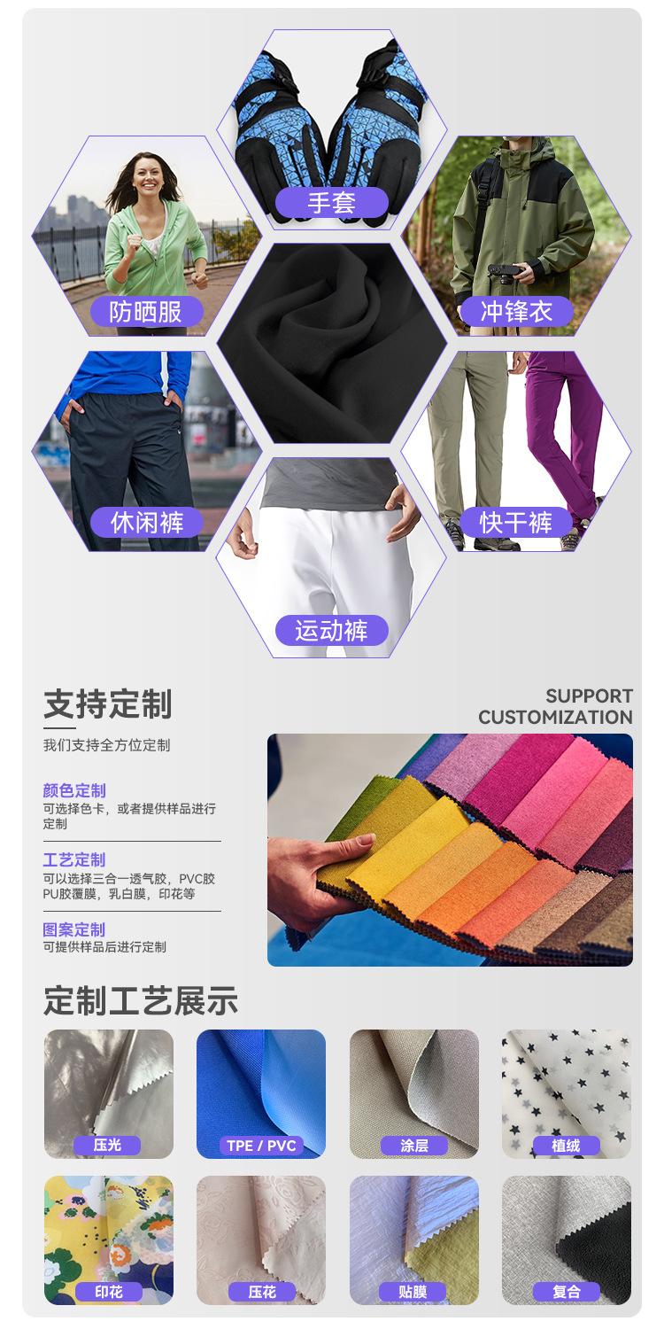 Chaqueta de exterior de tejido pongee elástico en cuatro direcciones 75D, impermeable, de secado rápido y cortavientos. Tejido de alta elasticidad.
