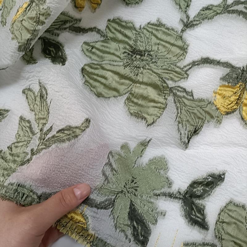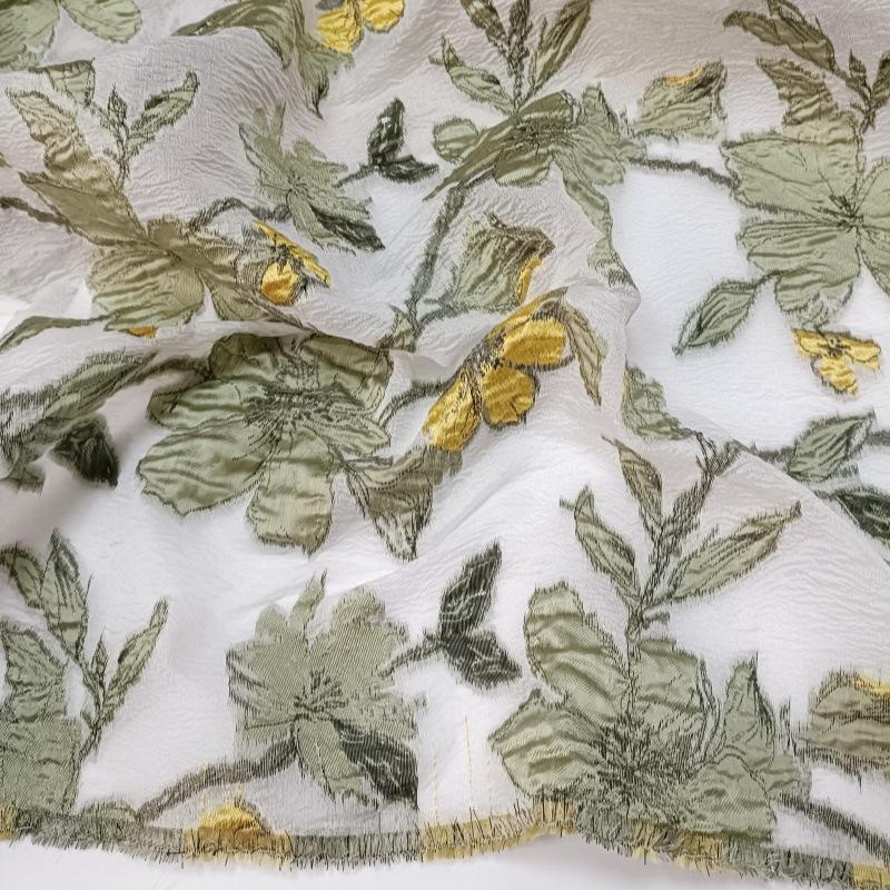 Tela de organza semitransparente con estampado vintage de flores en relieve jacquard, hilo cortado, estilo nacional, para vestido Hanfu.