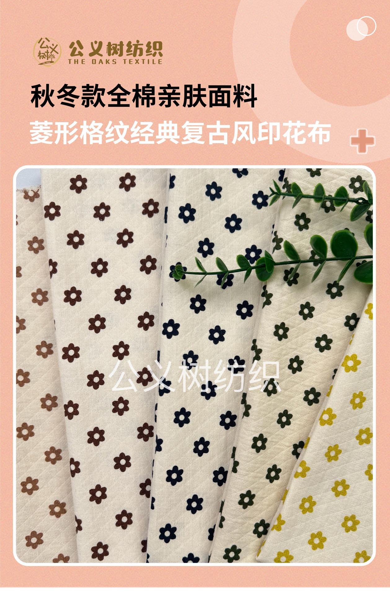"Candy Garden" Tela de algodón agradable para la piel para otoño e invierno, con estampado de rombos y pequeñas flores.