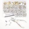 Cantidad: 80 juegos (50 juegos de tensores + 30 juegos de hebillas blancas grandes) + 2 piezas de 201 herramientas especiales + punzón negro + alicates de punzón