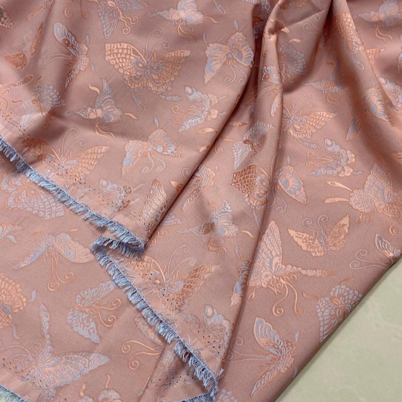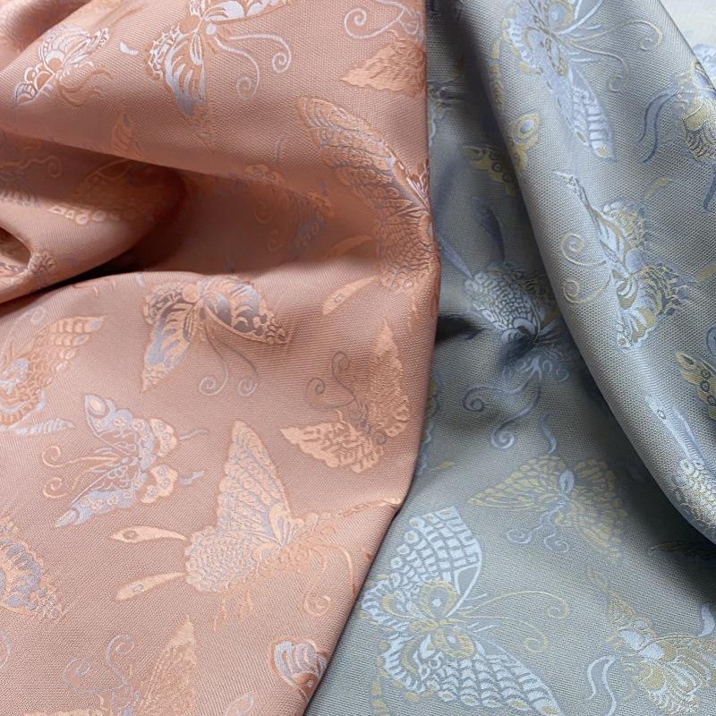 Tela Jacquard de Seda Humana para Vestido Hanfu, Camisa, Estilo Nacional, Tela Cheongsam con Mariposas y Flores, Tela Jacquard para Mujer en stock