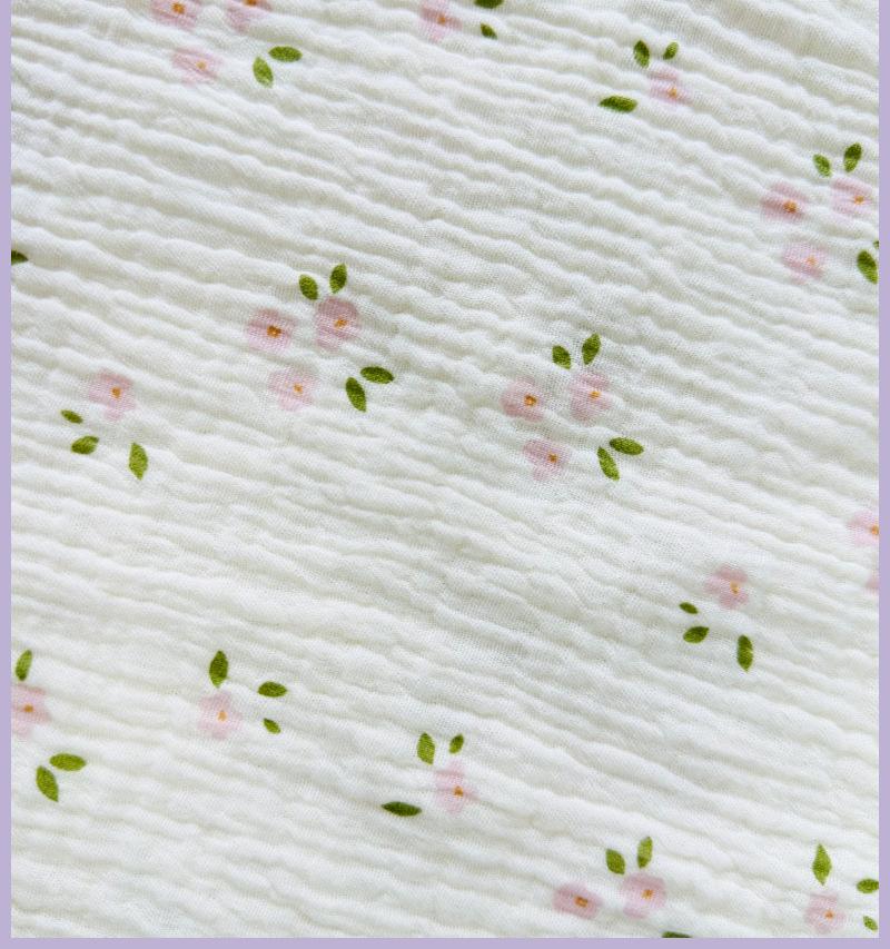 Tela de gasa de algodón con estampado de flores rosas y tres pequeñas flores, doble capa, arrugada, para toallas de saliva de bebé, para el hogar