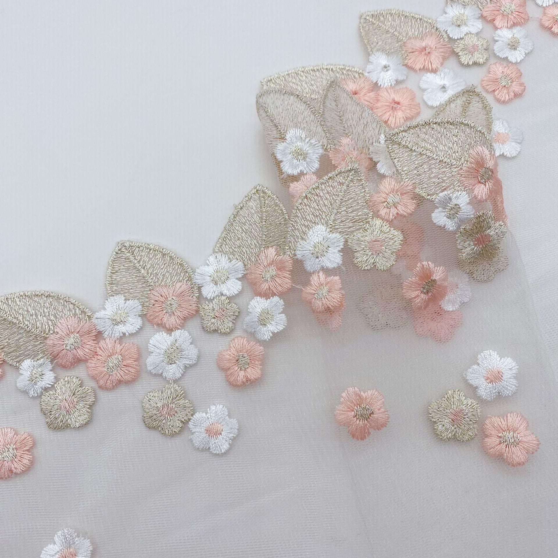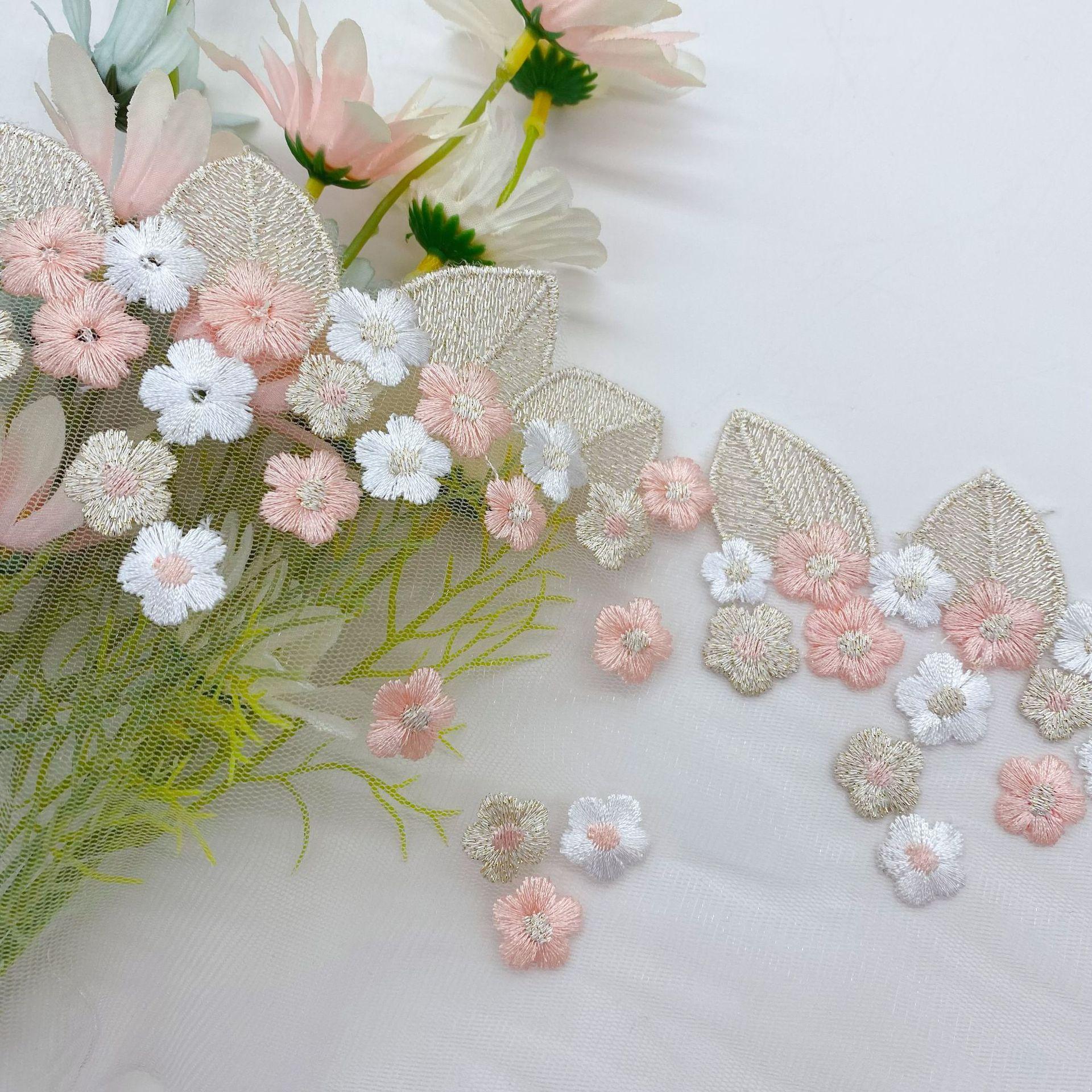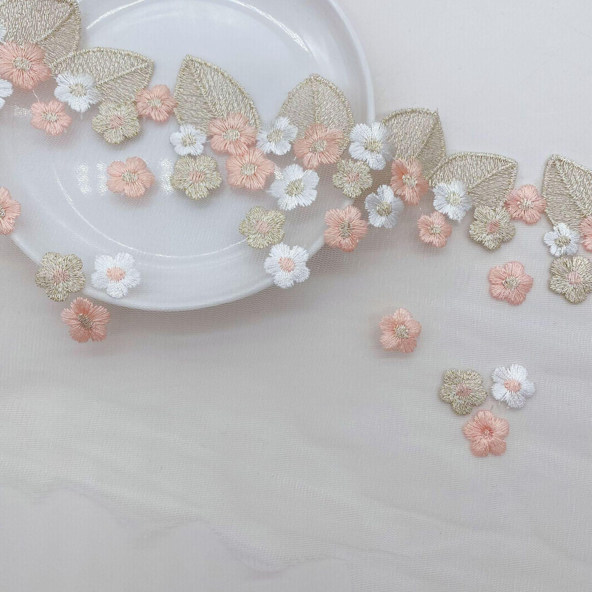 Encaje de hilo dorado accesorios de ropa nuevo en stock ropa para niños tocado diy línea de color bordado de encaje de código de barras