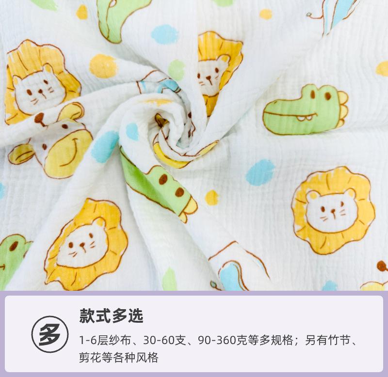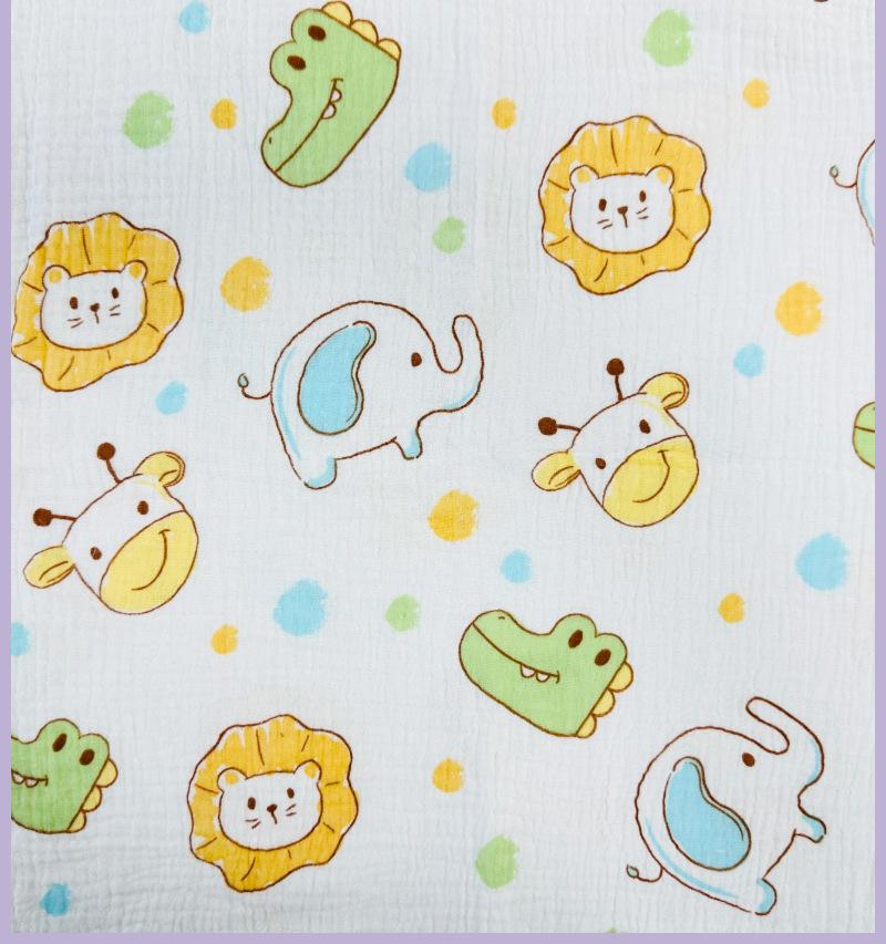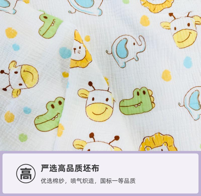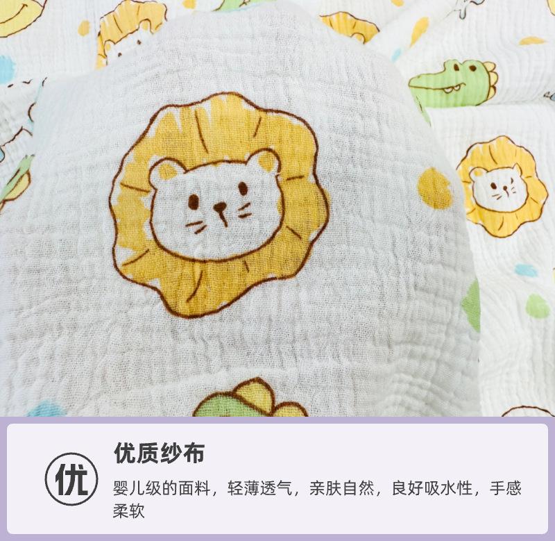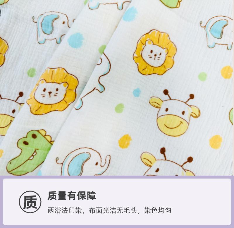 Tela crepé de algodón de doble capa con estampado de dibujos animados de león pequeño, ideal para ropa de bebé, toallas y saliva.