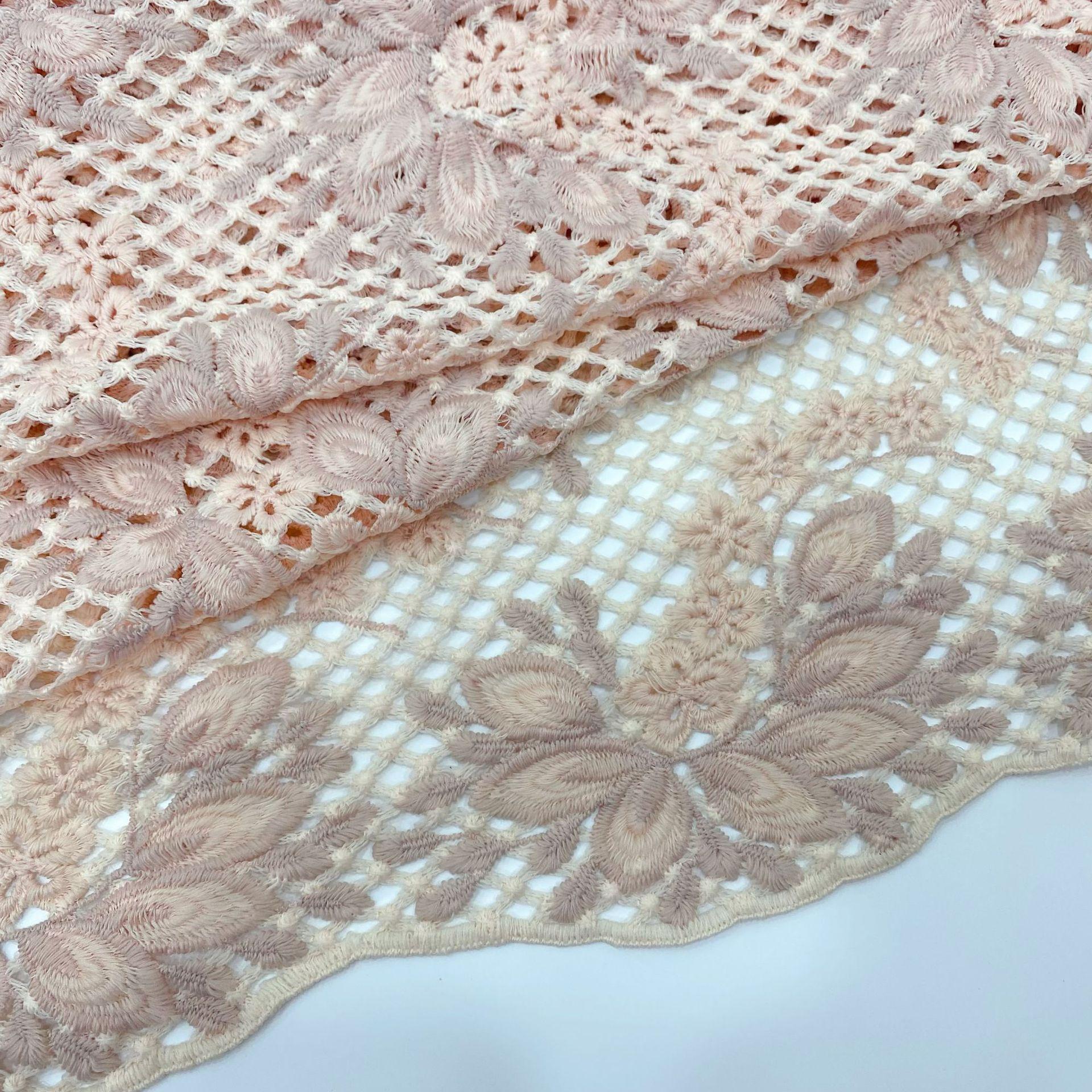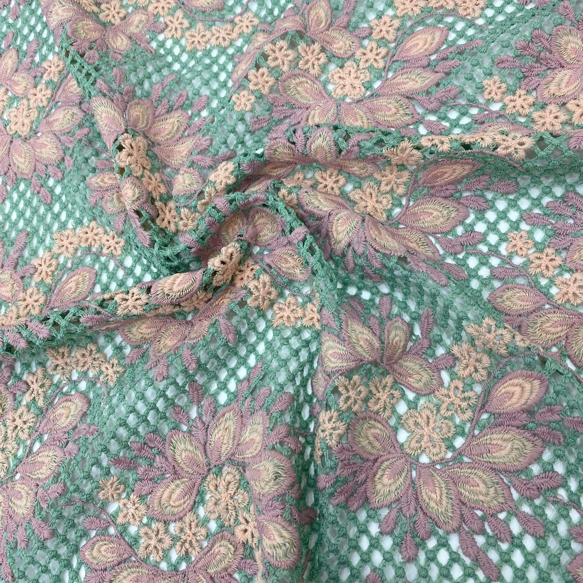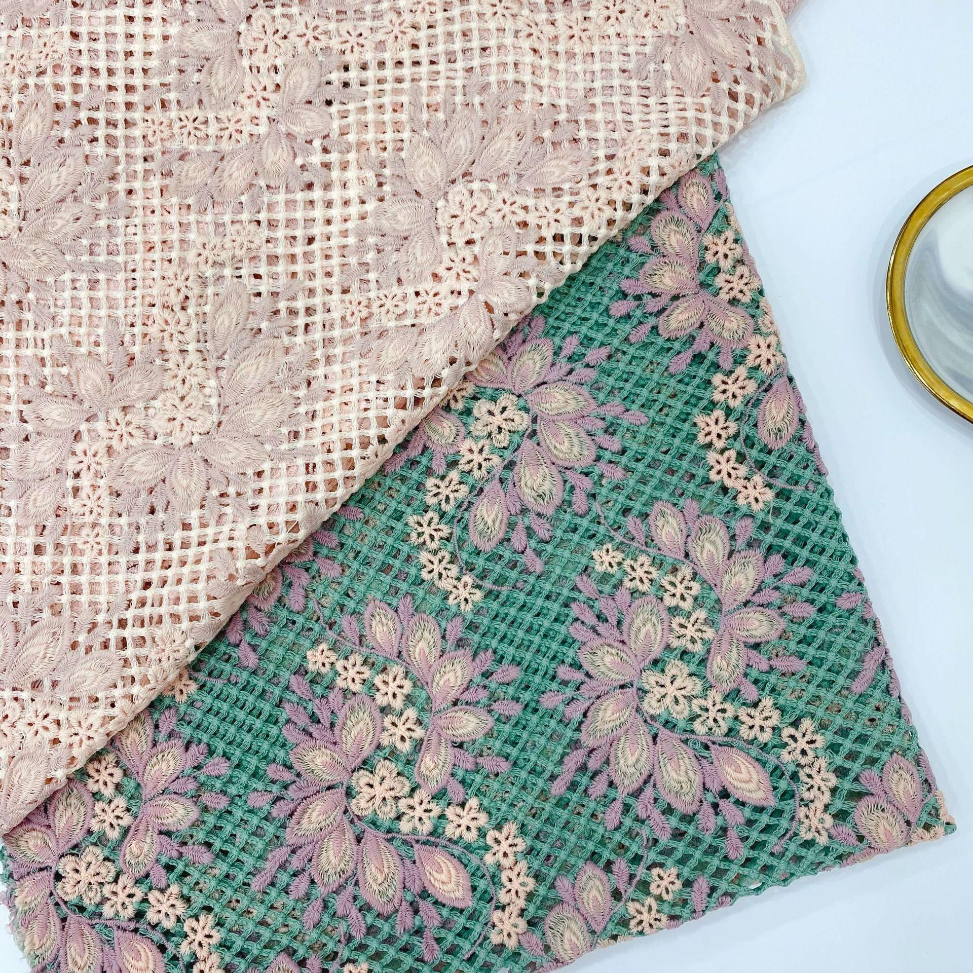 Nuevo vestido de encaje completo de tela bicolor para mujer, accesorios superiores, tela bordada de seda de leche soluble en agua con línea de color