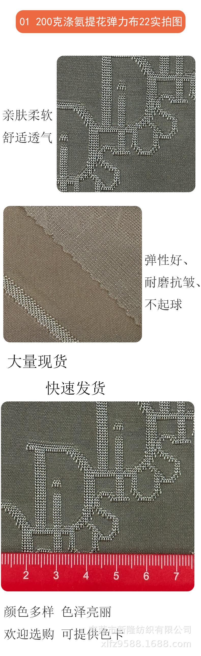 Tela elástica de poliéster jacquard de 200 g para camisetas, polos, pantalones y faldas.
