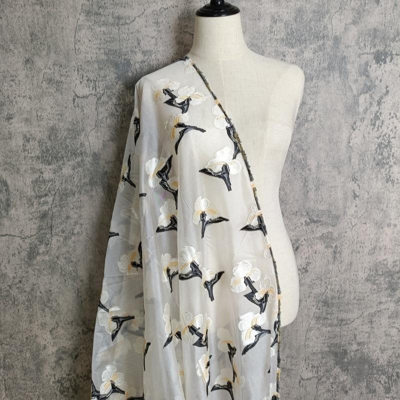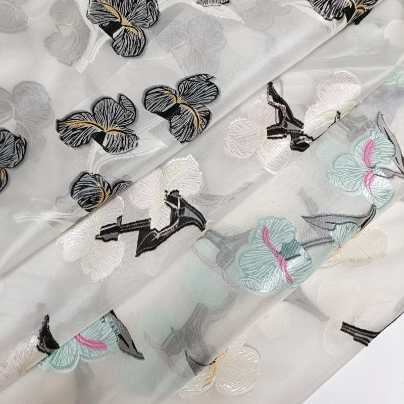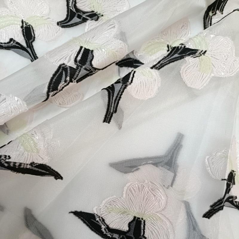 Tela de organza floral bicolor, malla jacquard, flores cortadas, ligera, transpirable, para fondo de ropa, tela hecha a mano para manualidades.