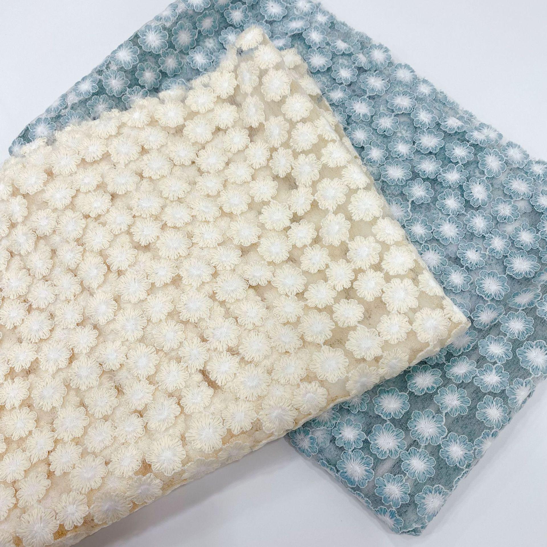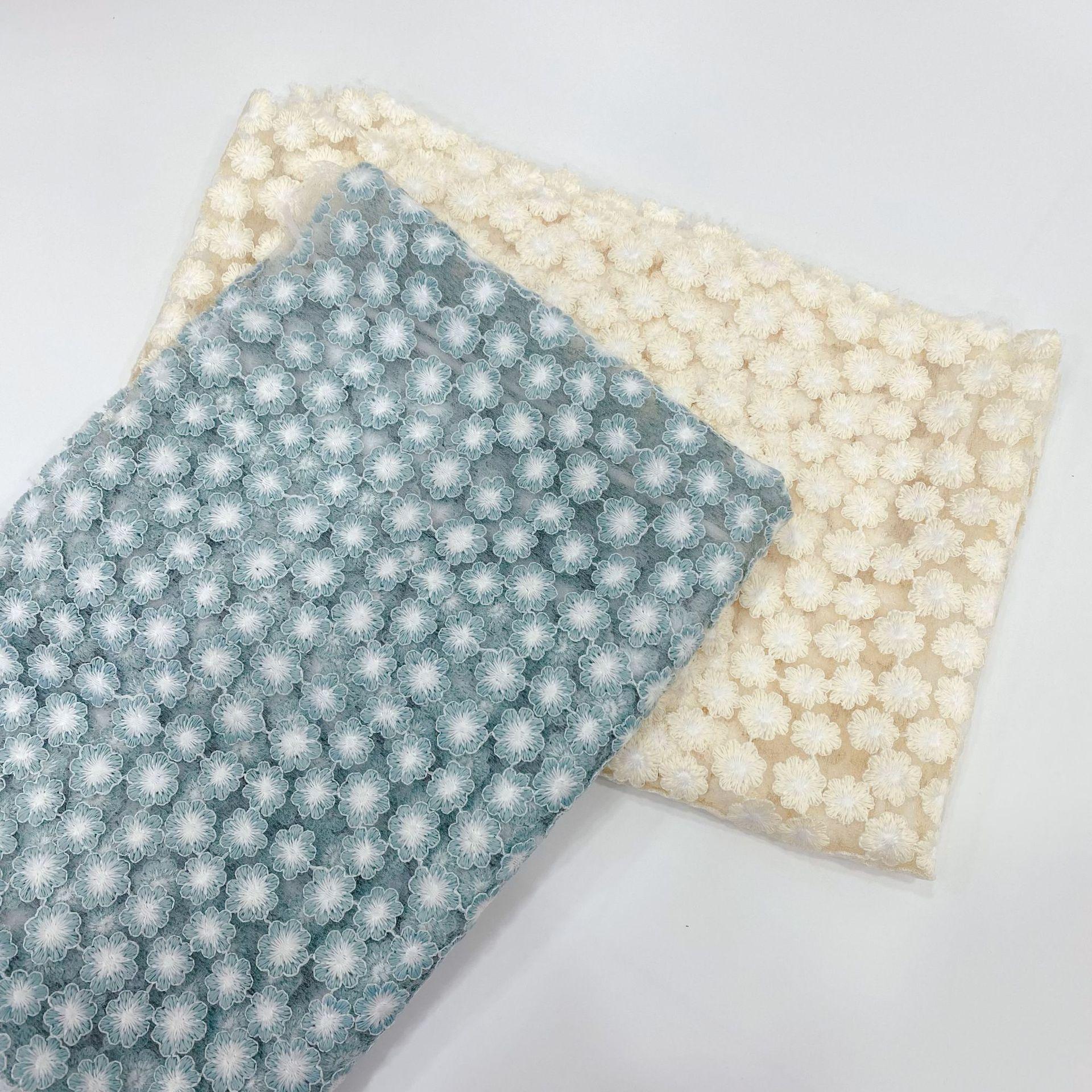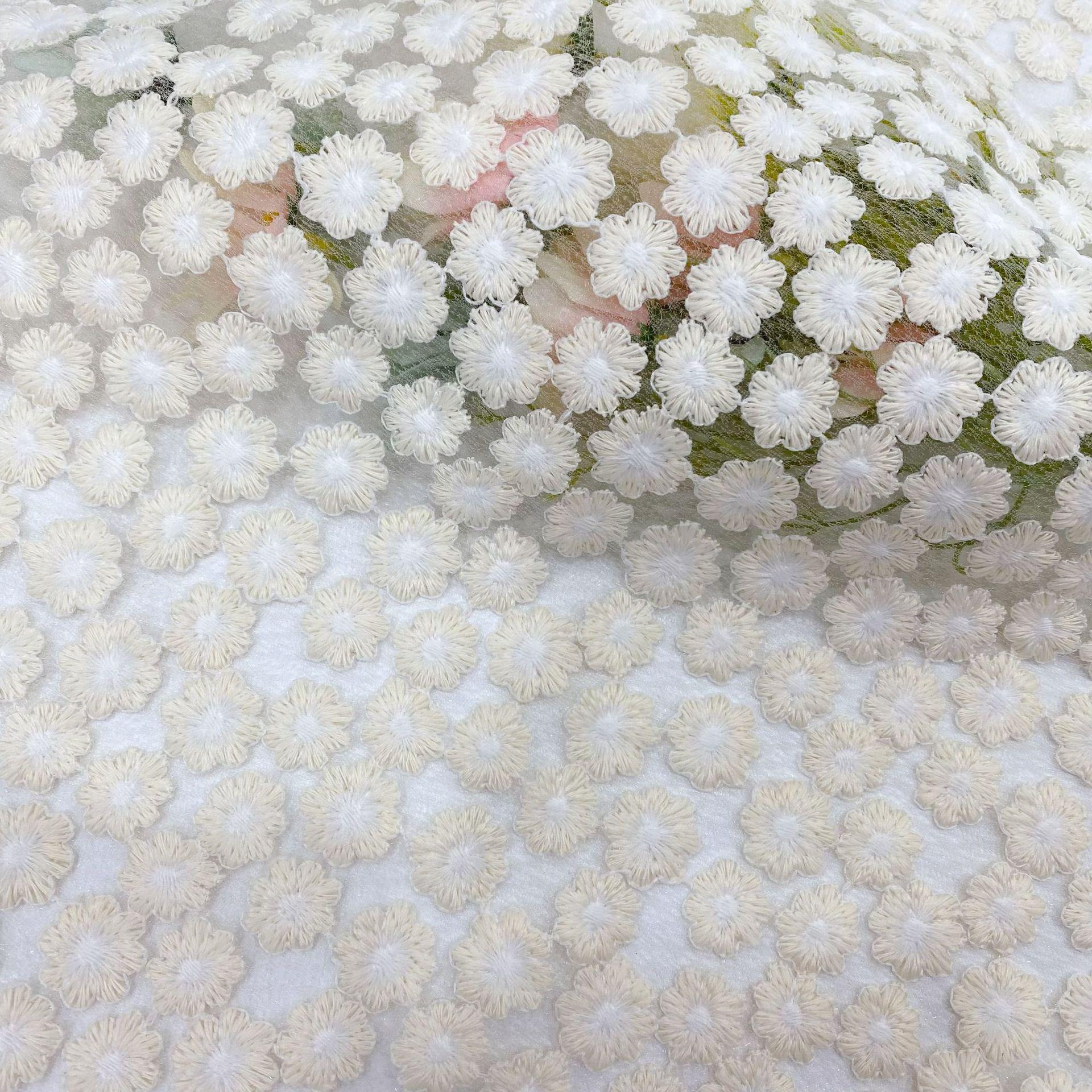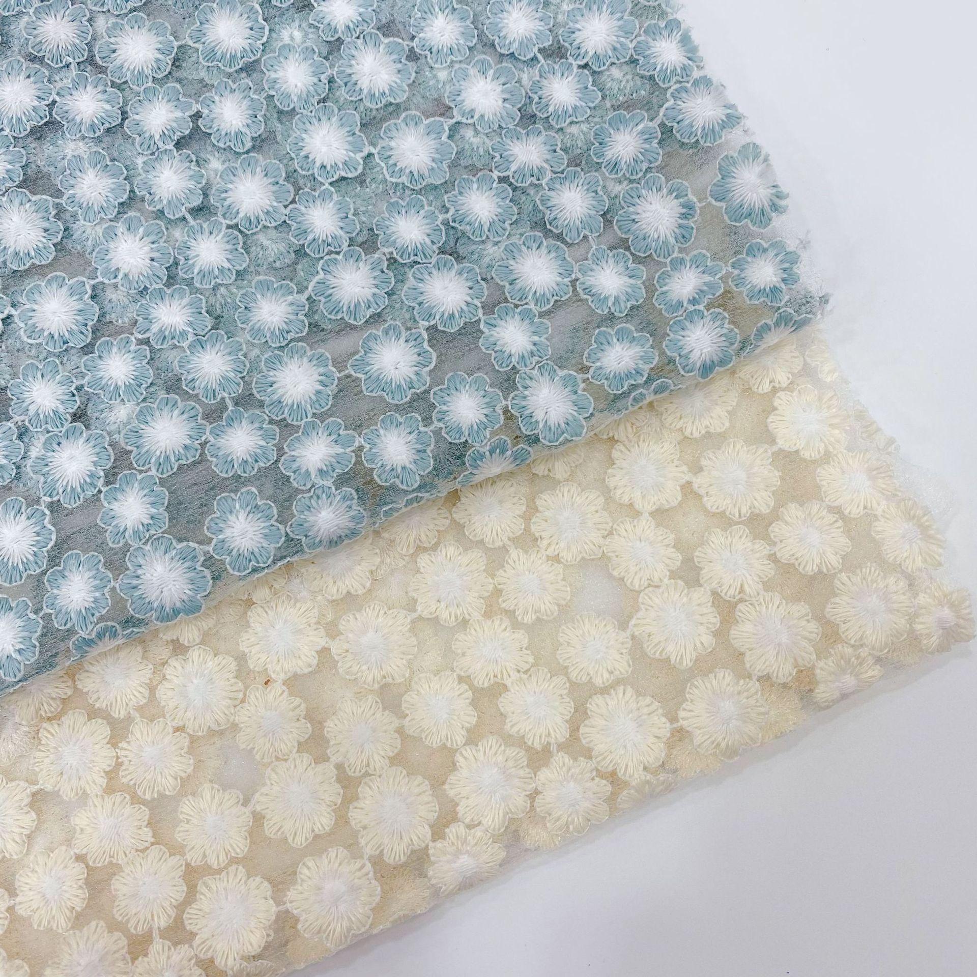 Vestido de novia de mujer nuevo de encaje completo de dos colores, tela bordada de malla decorativa, bordado por computadora de margaritas pequeñas, venta al por mayor