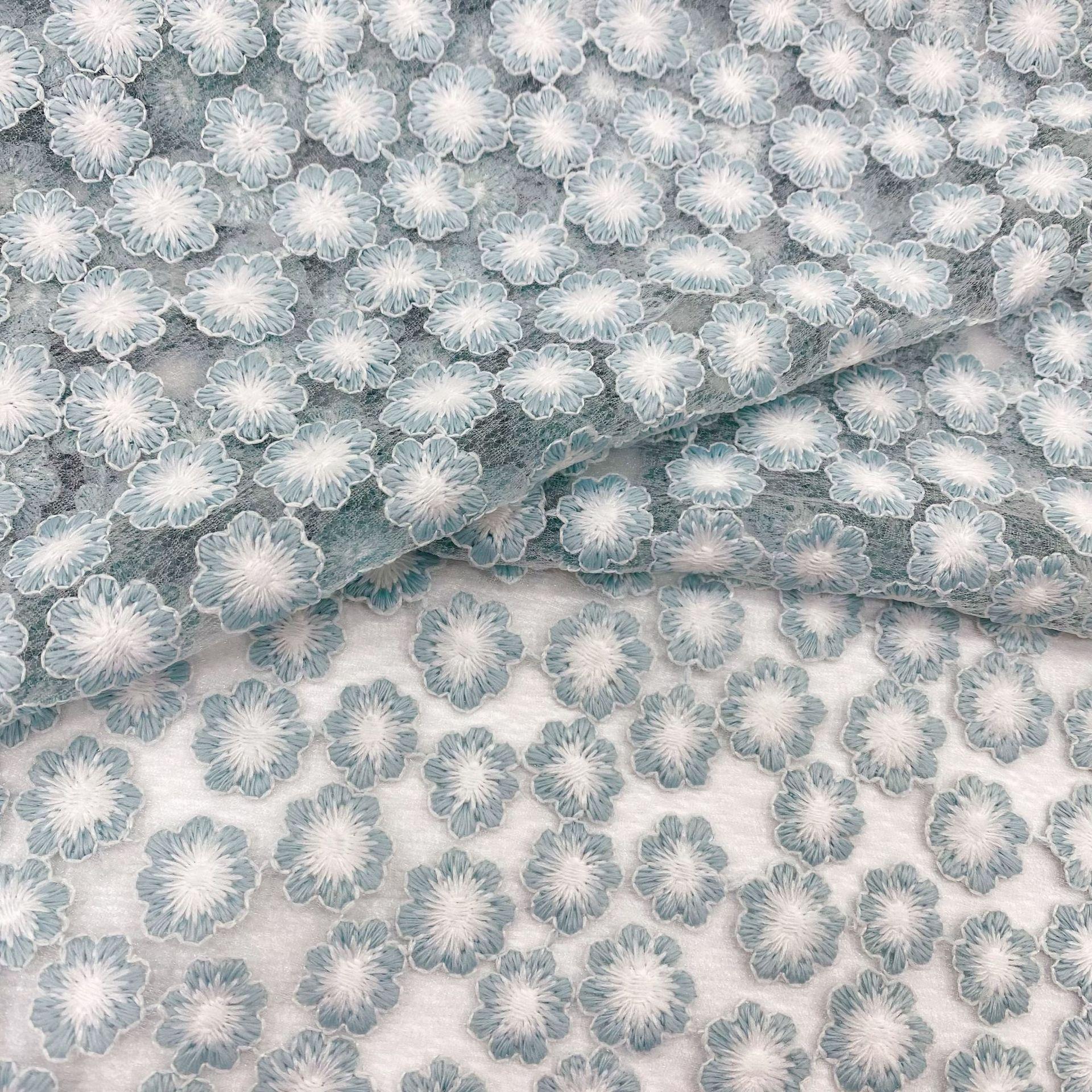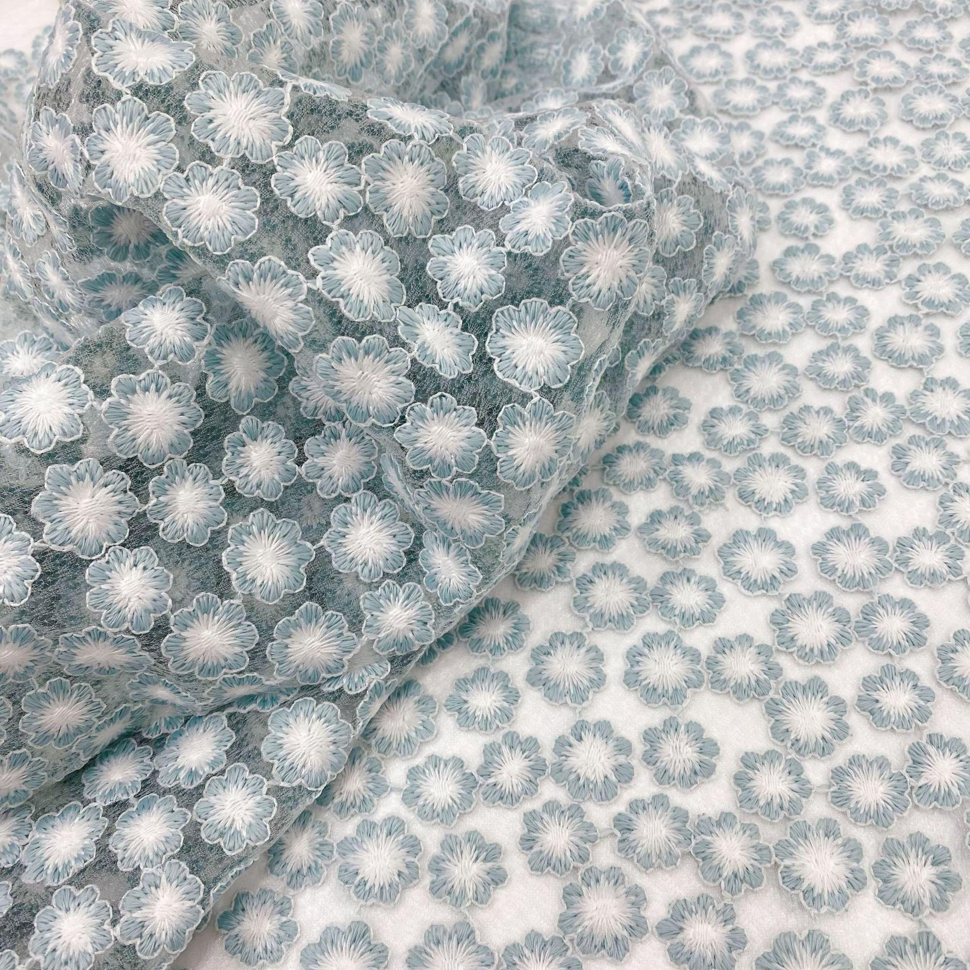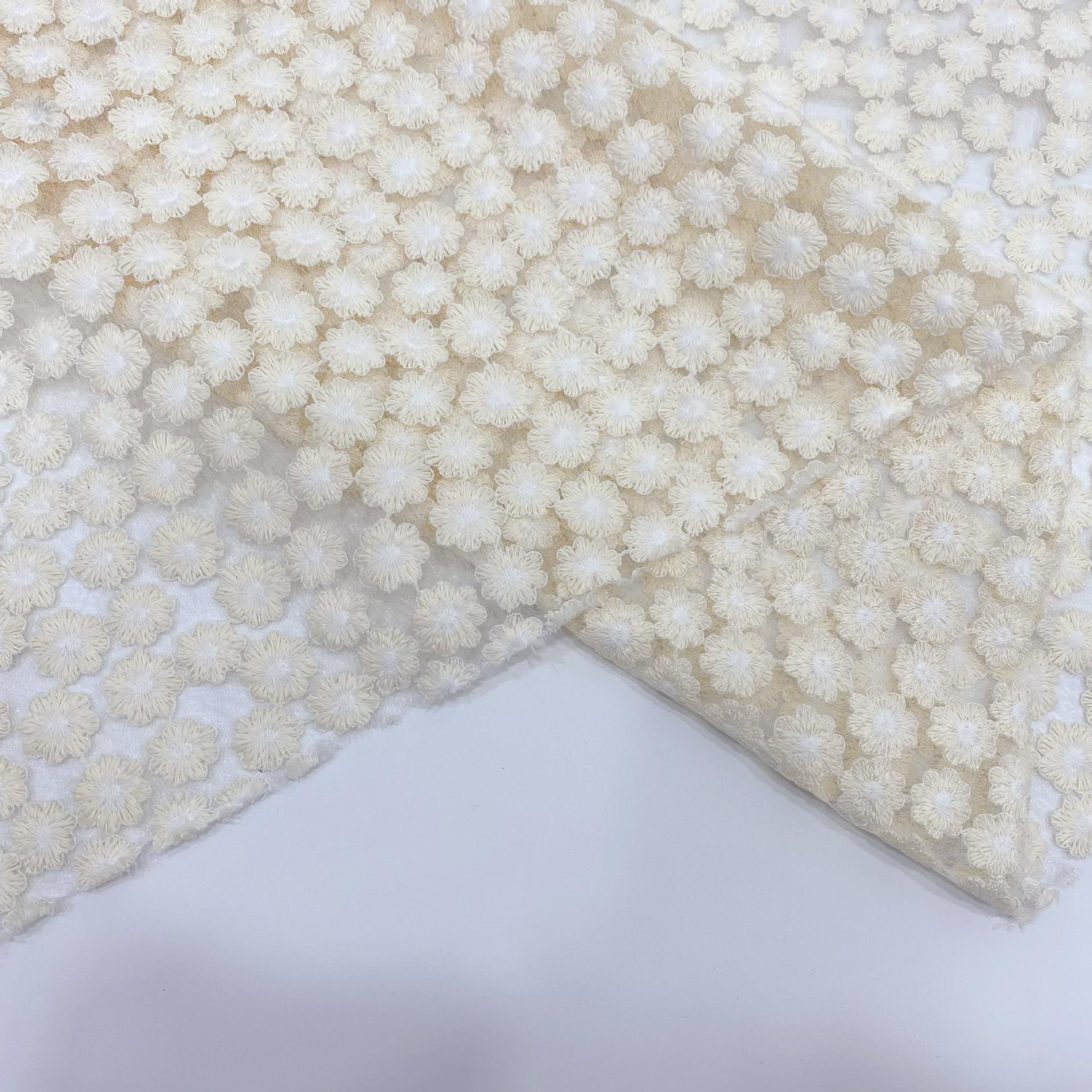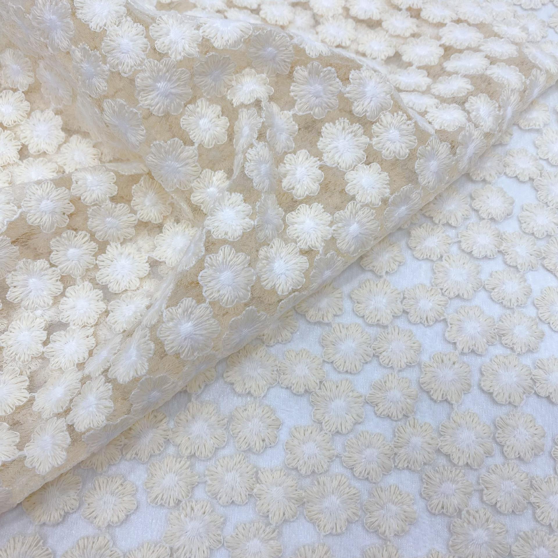 Vestido de novia de mujer nuevo de encaje completo de dos colores, tela bordada de malla decorativa, bordado por computadora de margaritas pequeñas, venta al por mayor