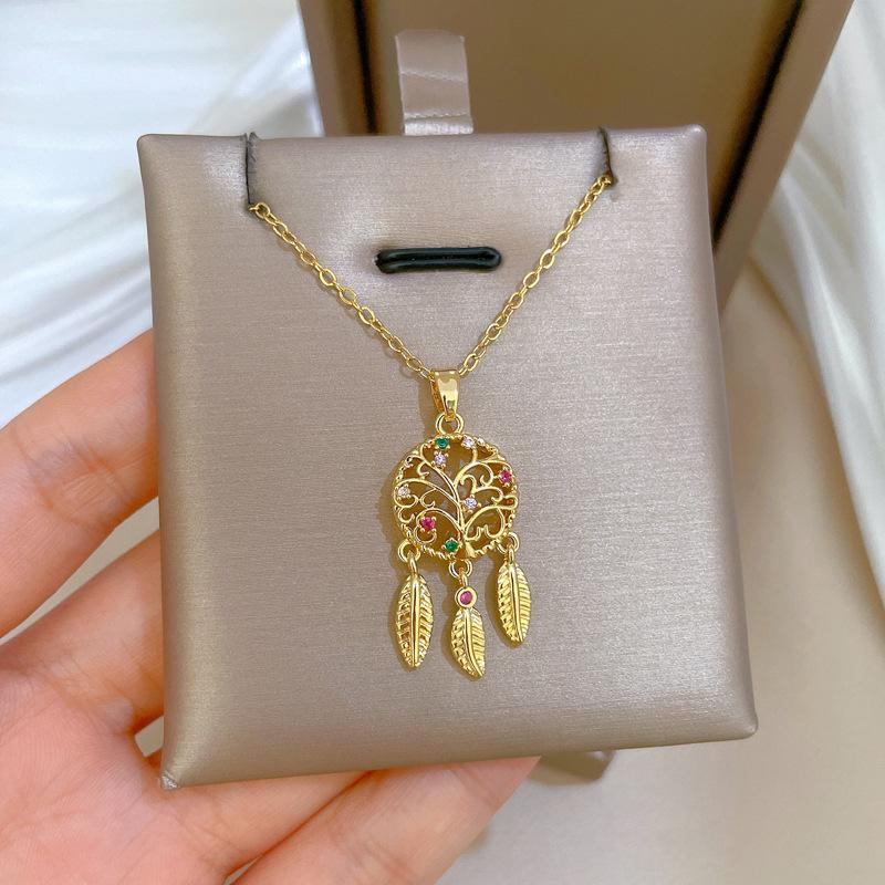 [Acero de titanio] Elegante collar de diamantes de lujo con diseño de red de ensueño colorido y ligero para mujer, cadena de clavícula combinable, cadena de acero de titanio.
