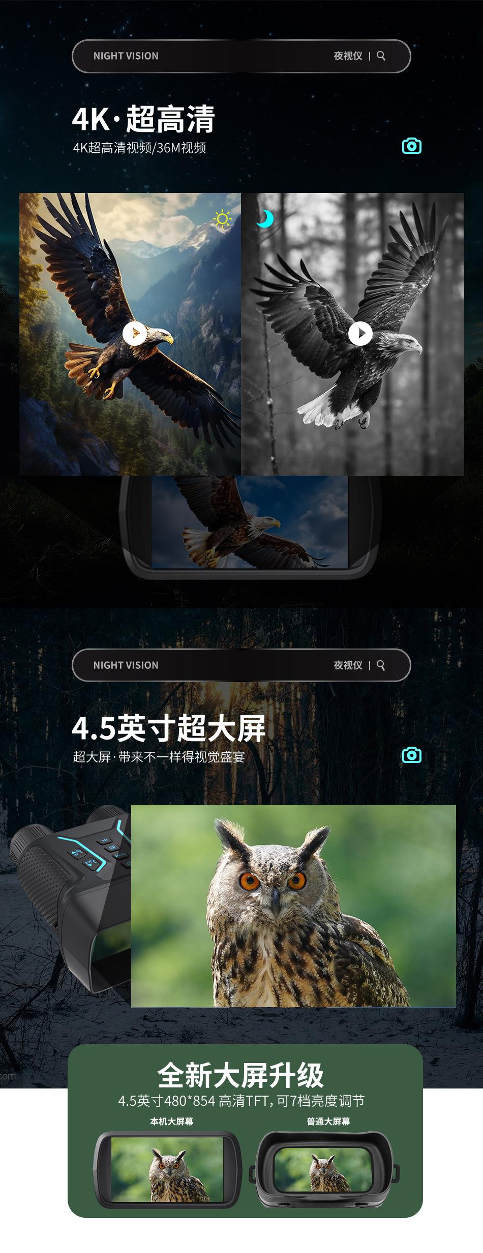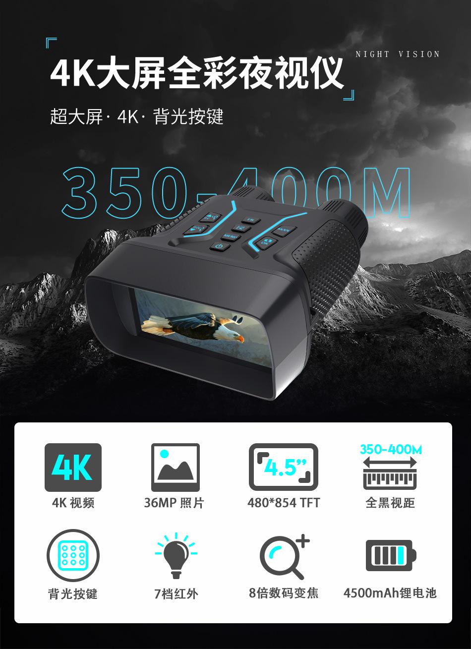 Dispositivo de visión nocturna 4K con pantalla grande de 4,5 pulgadas, binoculares digitales HD para exteriores, telescopio de visión nocturna infrarroja, novedad de 2024