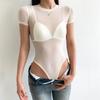 Mono Sexy Transfronterizo Push-Up de Pecho Pequeño Malla Francesa Transparente Mono Ajustado Micro-Moldeador