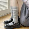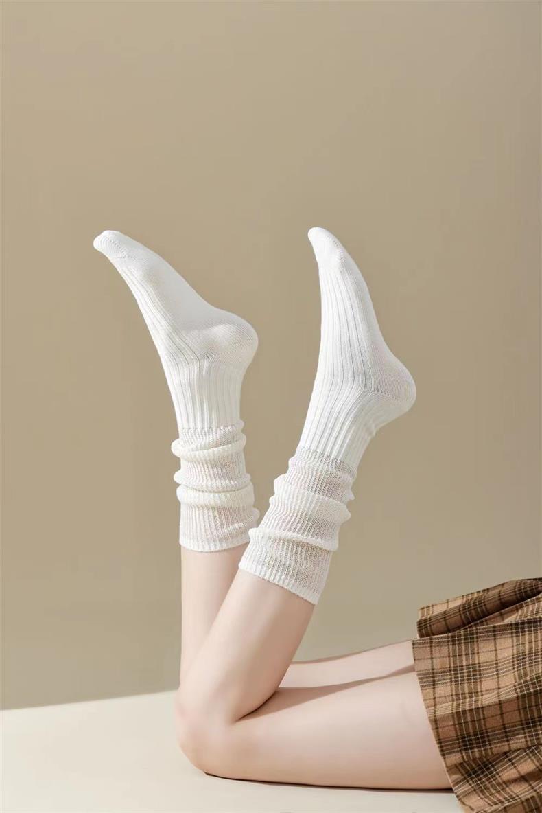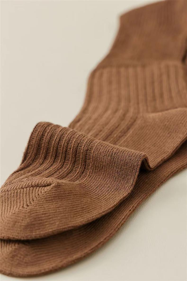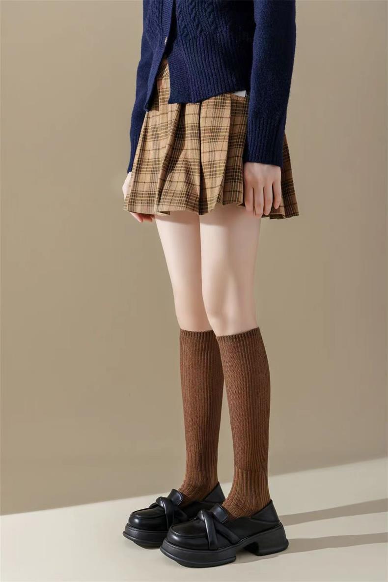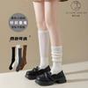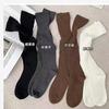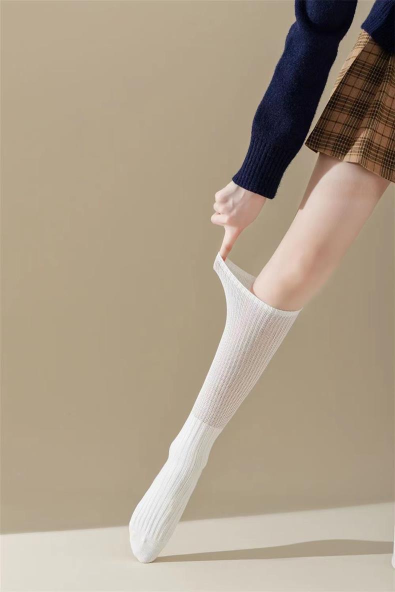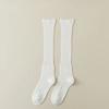 Calcetines Nuevos para Mujer Coreanos Primavera y Otoño Nuevos Color Sólido Casual Calcetines de Puño Doble Aguja Rayas Verticales Calcetines hasta la Rodilla Caña Larga Calcetines Apilados