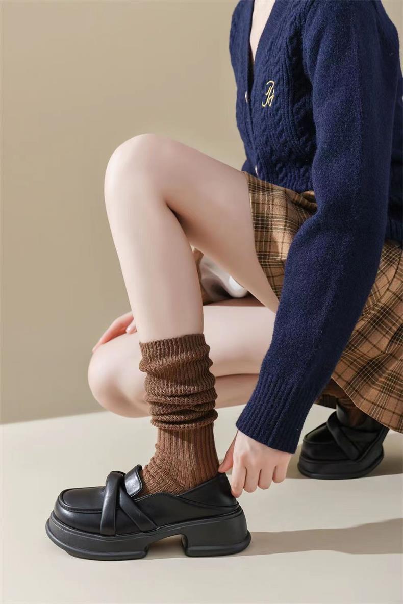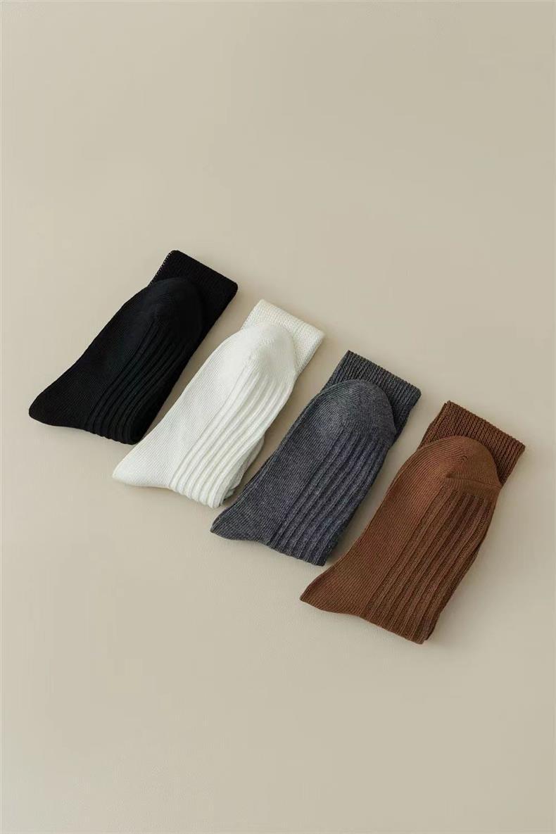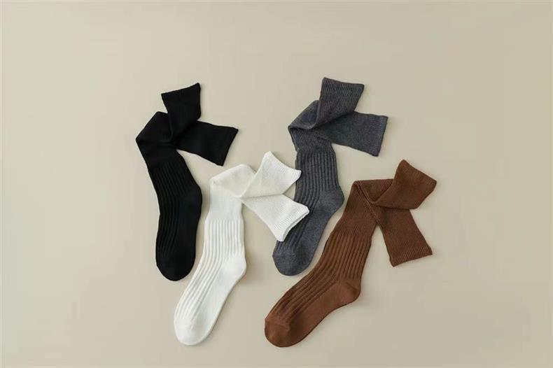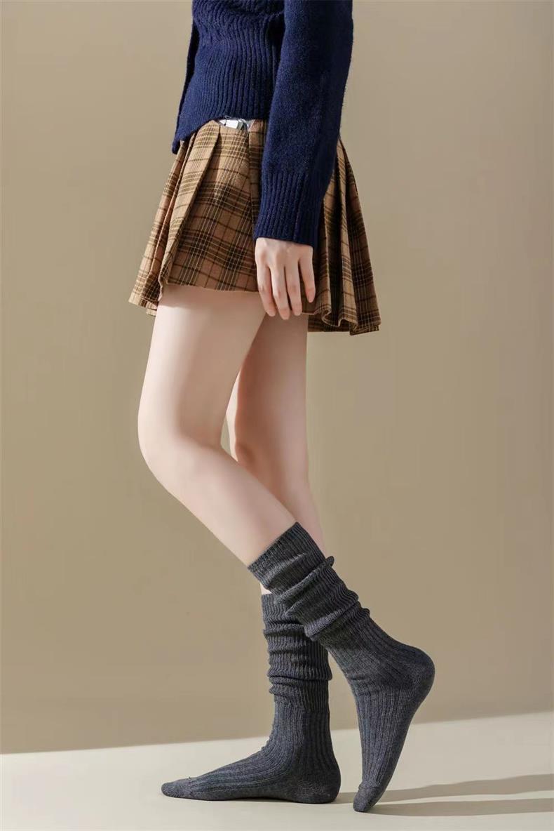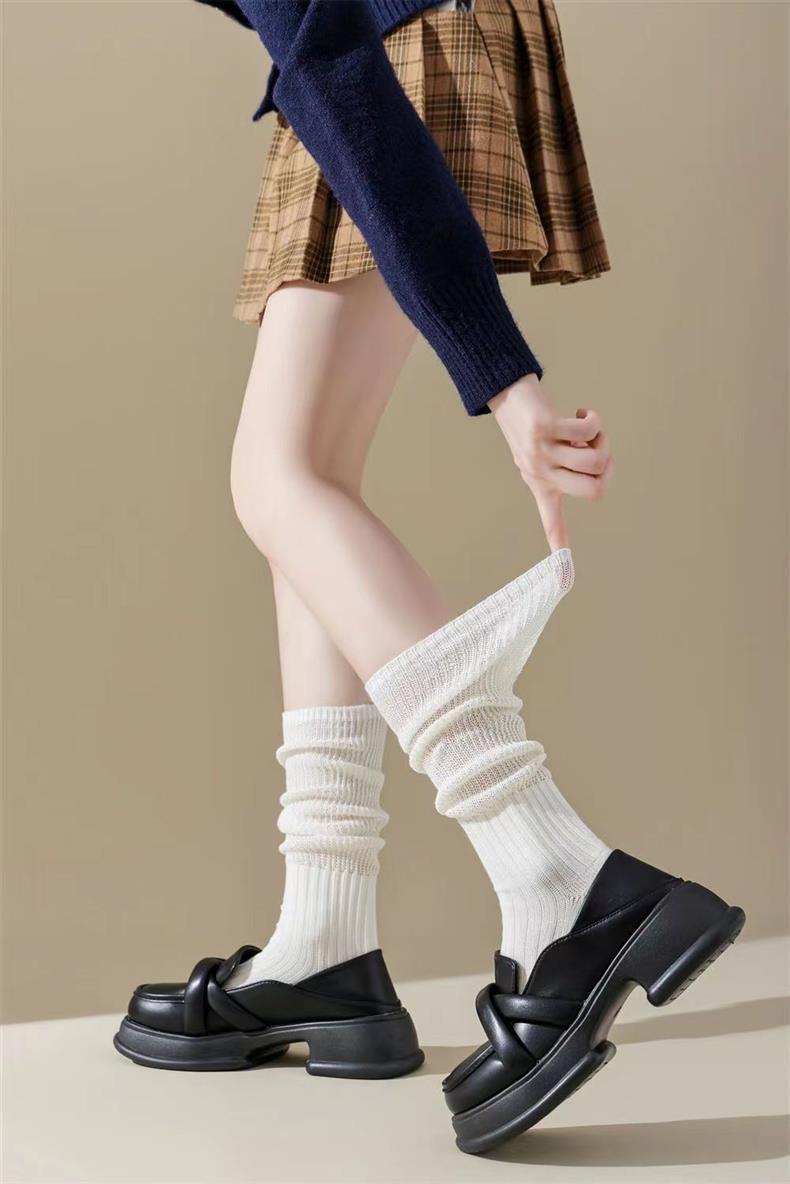 Calcetines Nuevos para Mujer Coreanos Primavera y Otoño Nuevos Color Sólido Casual Calcetines de Puño Doble Aguja Rayas Verticales Calcetines hasta la Rodilla Caña Larga Calcetines Apilados