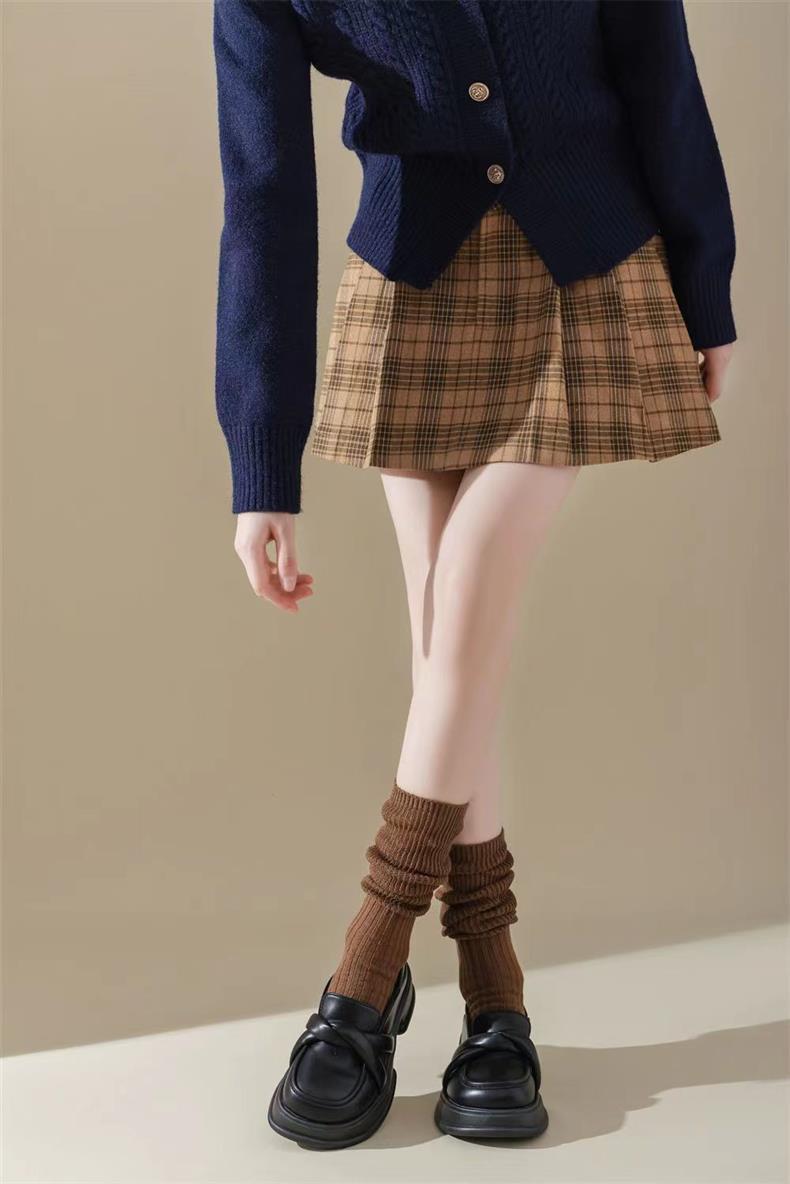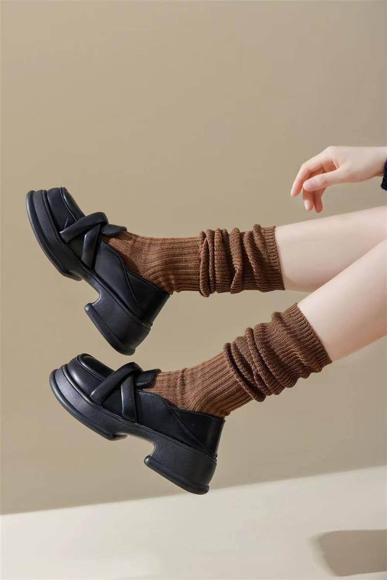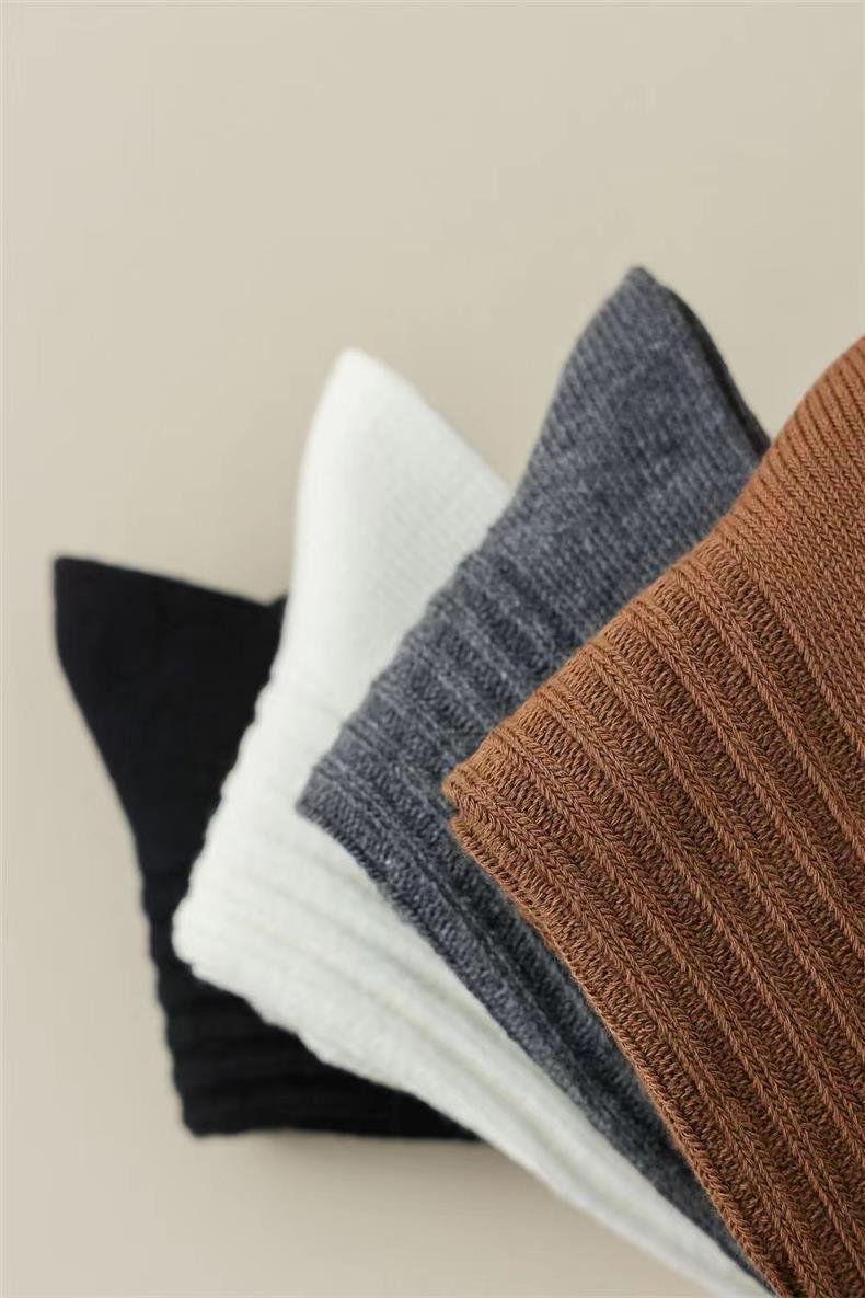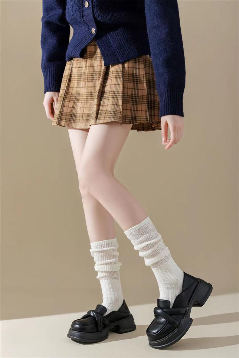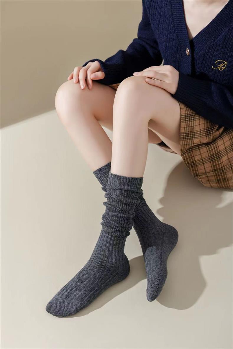 Calcetines Nuevos para Mujer Coreanos Primavera y Otoño Nuevos Color Sólido Casual Calcetines de Puño Doble Aguja Rayas Verticales Calcetines hasta la Rodilla Caña Larga Calcetines Apilados