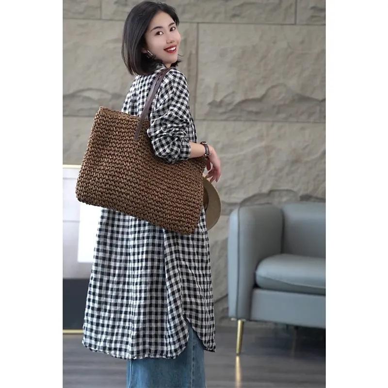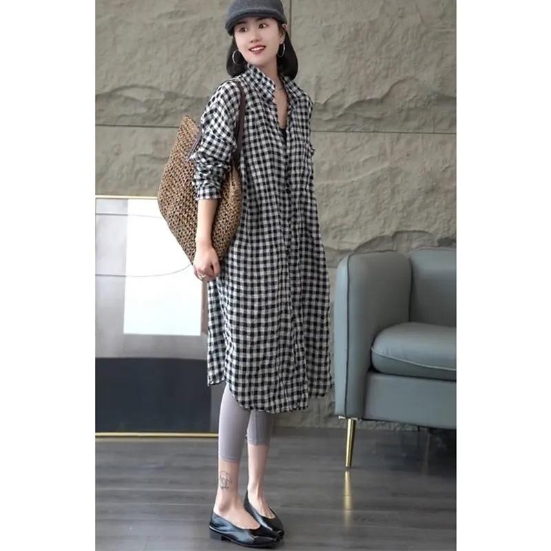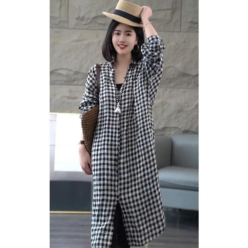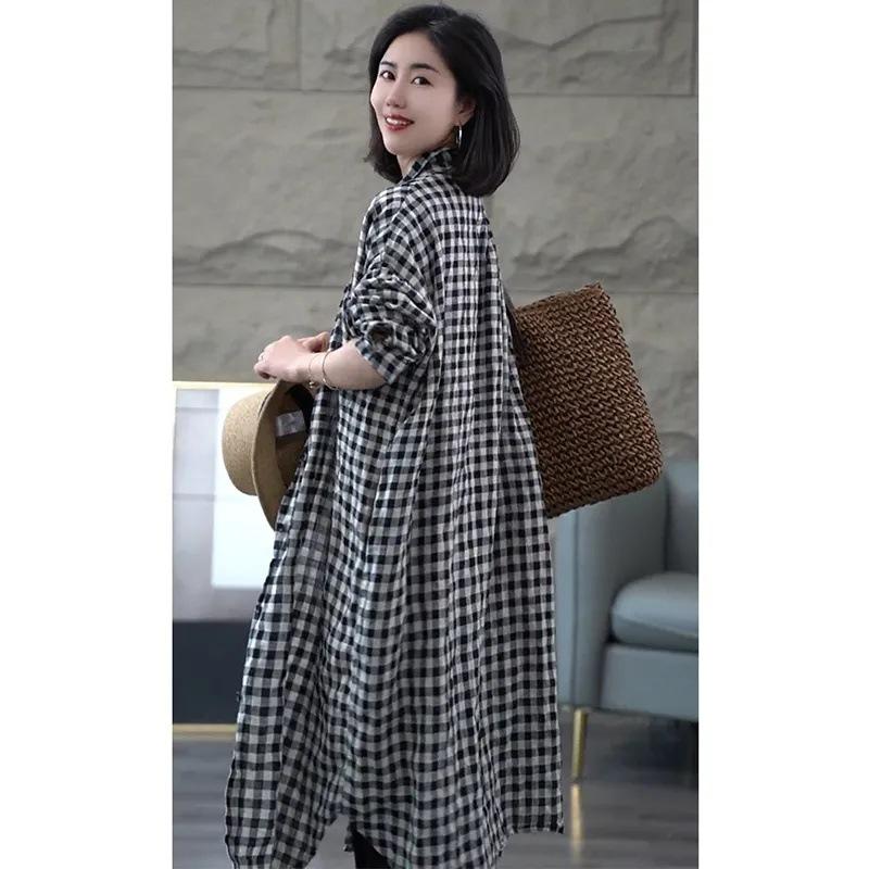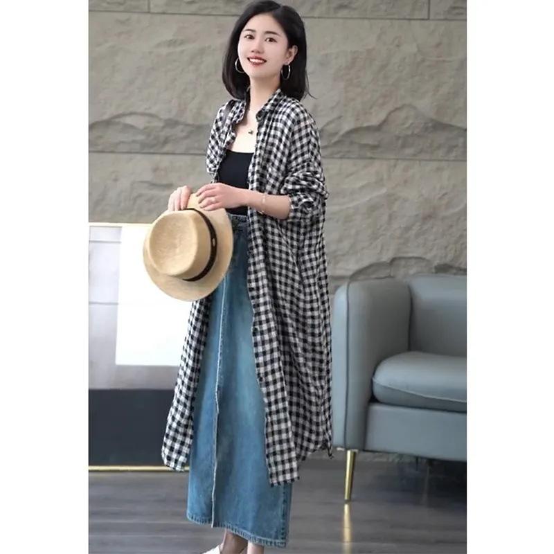 Camisa de Cuadros de Manga Larga para Mujer Primavera y Verano Nueva Monocromática Moderna Talla Grande Holgada Mediana Delgada Ropa Protectora Solar para Mujer