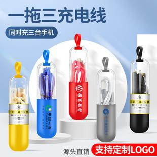 Tubo de papel rojo del año 2025, regalo de lata de papel, cable de datos multicabezal tres en uno, cable de carga trenzado uno a tres.