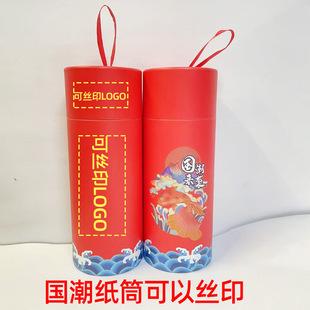 Adornos pequeños en forma de tubo de papel, marcapáginas publicitario, lata de papel kraft, lata de papel redonda, lata de papel personalizada, color rojo, Año de la Serpiente, Festival de Primavera, 2025