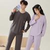 Pijama de otoño e invierno para mujer, nuevo cárdigan de algodón de manga larga, sencillo, de color liso, informal, de talla grande, ropa de casa, conjunto de dos piezas para mujer