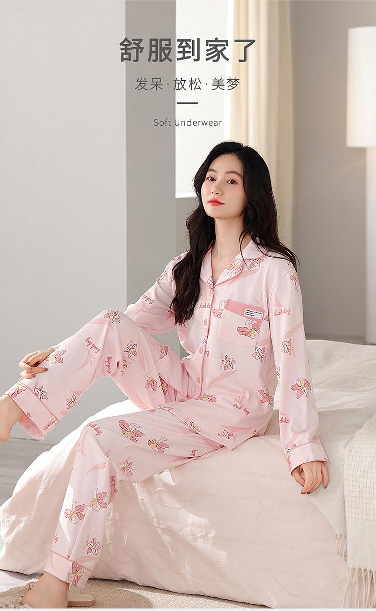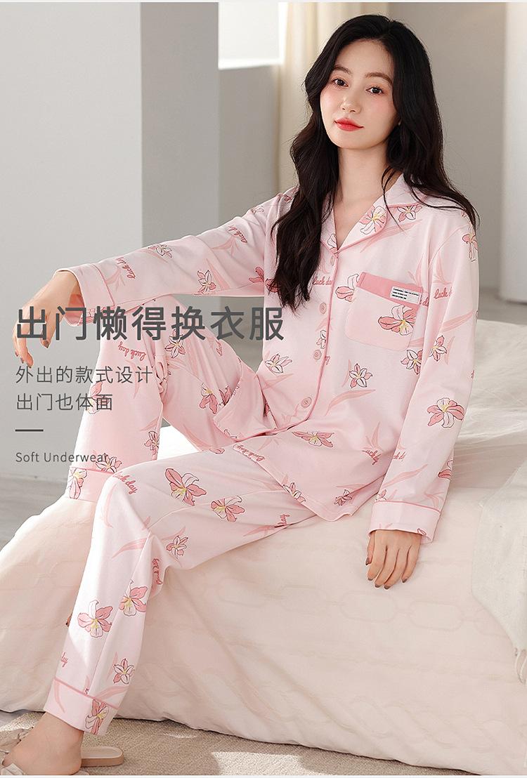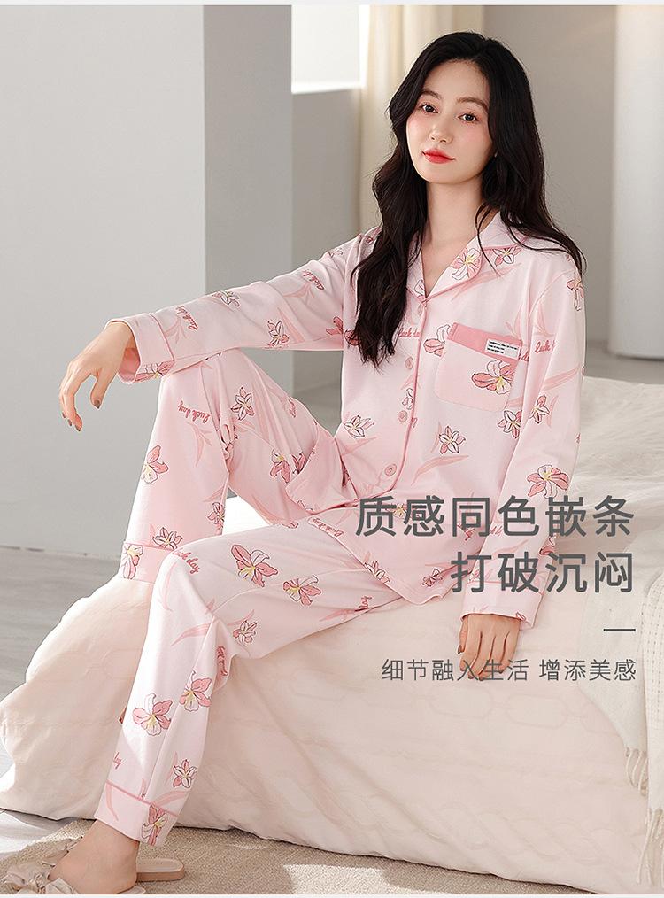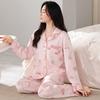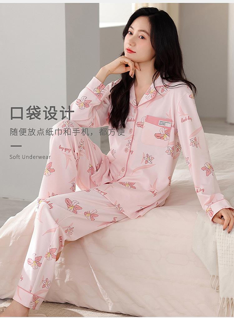 Pijama de algodón para mujer, otoño e invierno, nuevo cárdigan sencillo de manga larga con estampado informal de talla grande, ropa de algodón para el hogar, traje de mujer