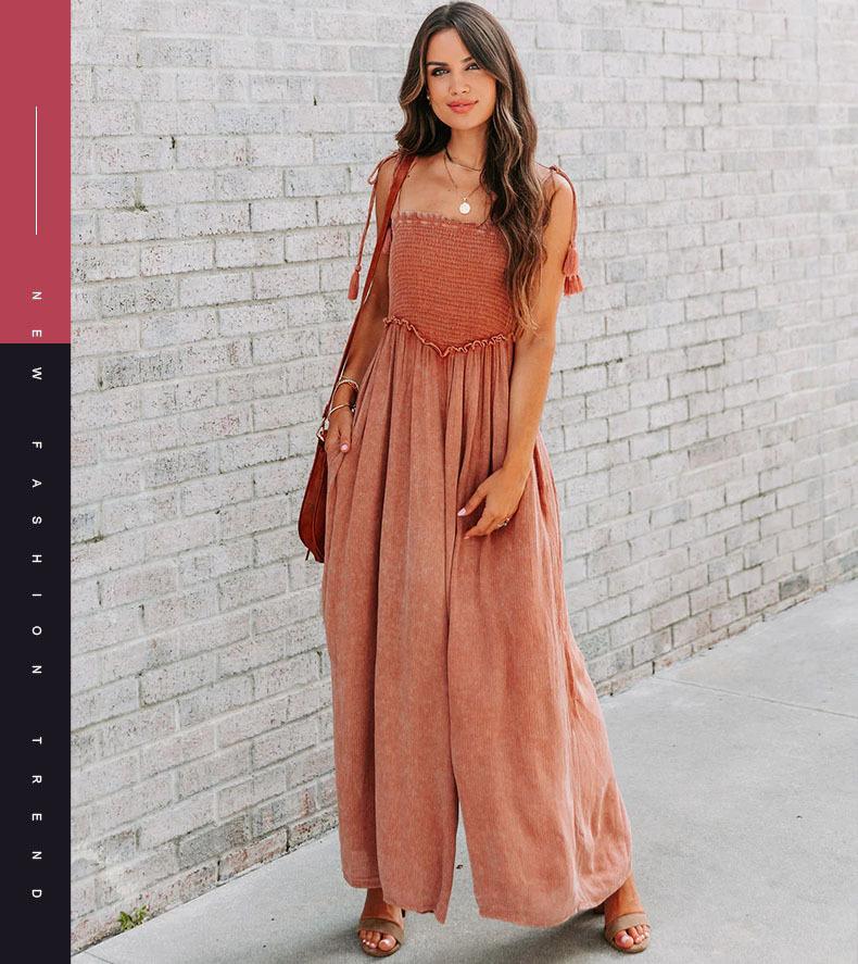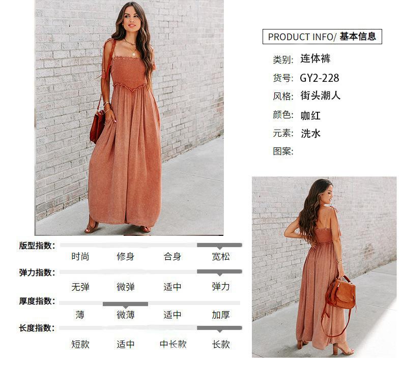 Mono de verano para mujer, estilo europeo y americano, holgado, con tirantes finos, lavado, con pierna ancha y bolsillos laterales.