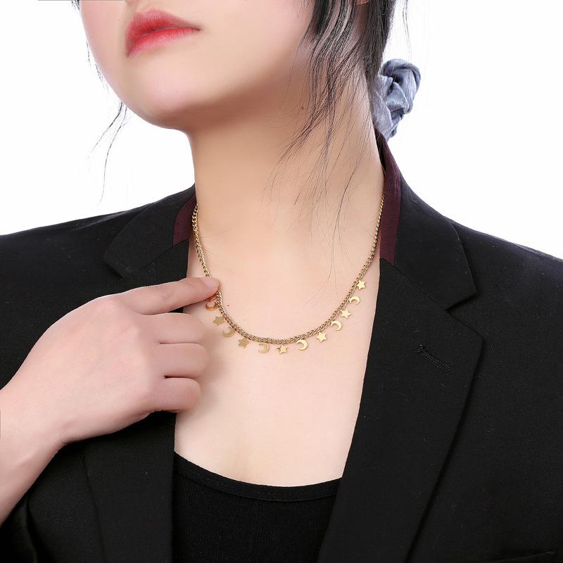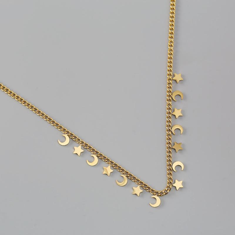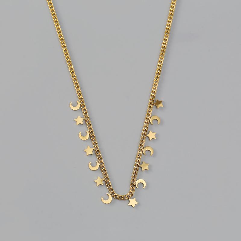 Europa y Estados Unidos estrellas y luna transfronterizas colgante de oro de 18k collar de acero de titanio cadena clavicular mujer metal de acero inoxidable no se desvanece