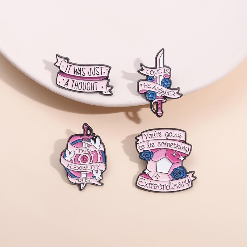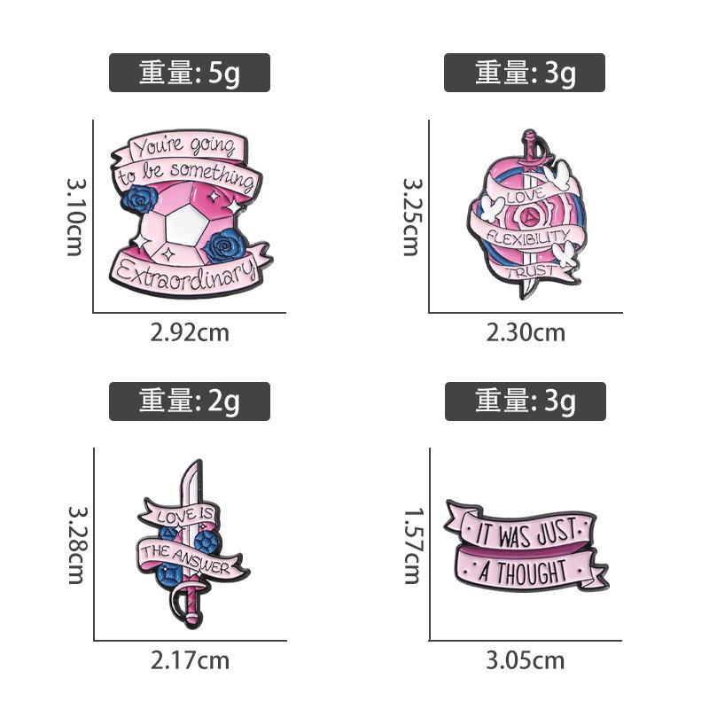 Insignia de Metal de Dibujos Animados Pin Lindo para Estudiante Carta de Dibujos Animados Inglés Accesorios Decoración Rosa Broche