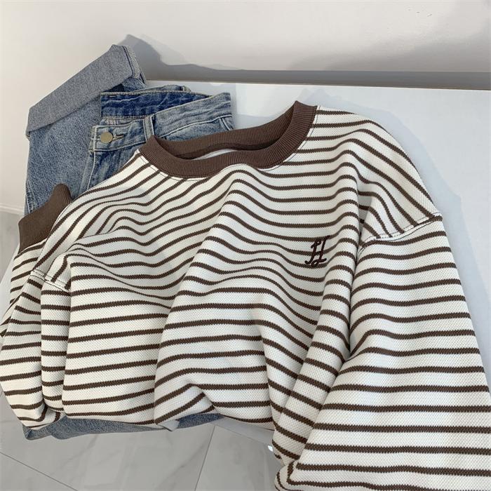 Sudadera de nicho perezosa a rayas estilo sudadera simple