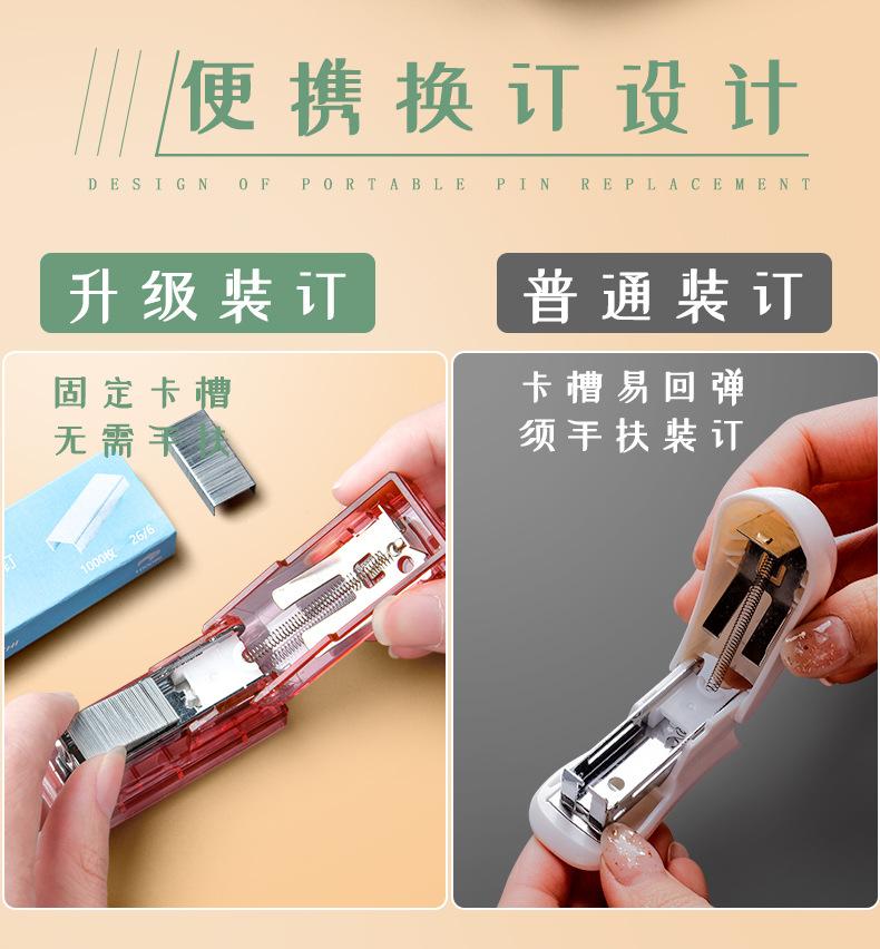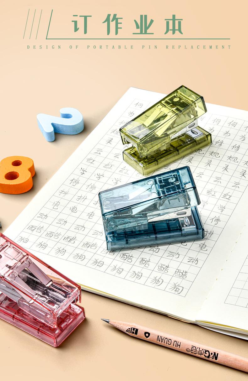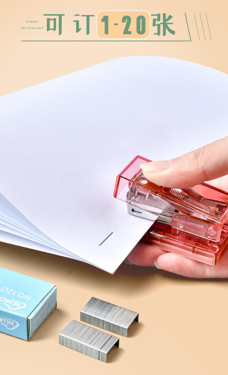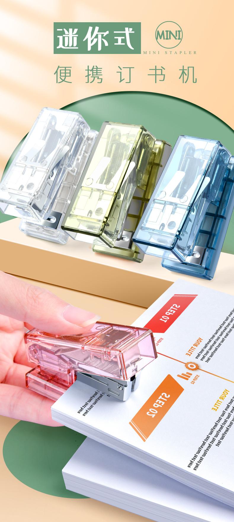 Grapadora pequeña transparente Huachi Mini grapadora de bajo esfuerzo Grapadora para estudiantes Grapadora multifuncional para suministros de oficina Grapadora