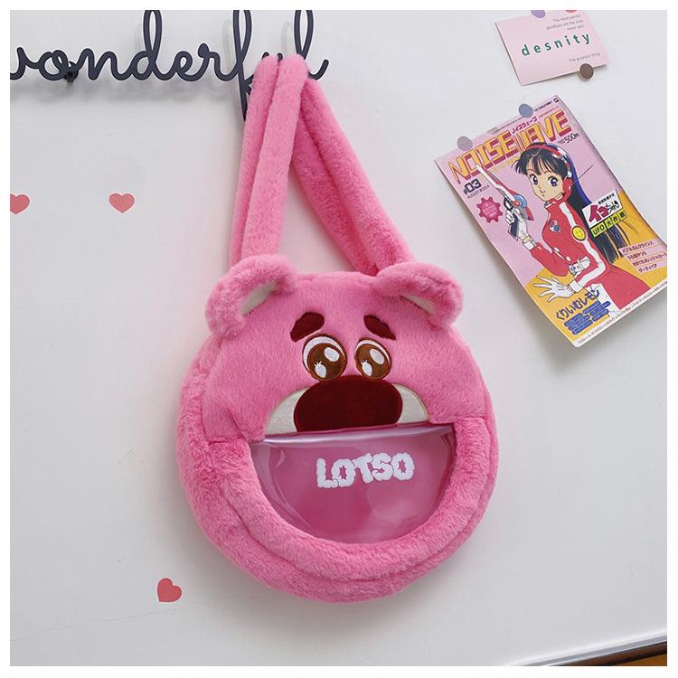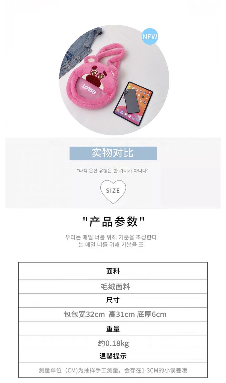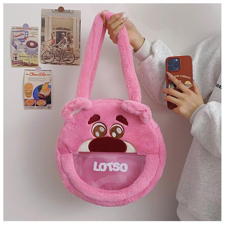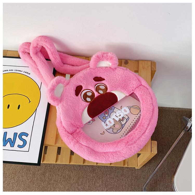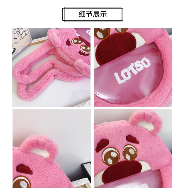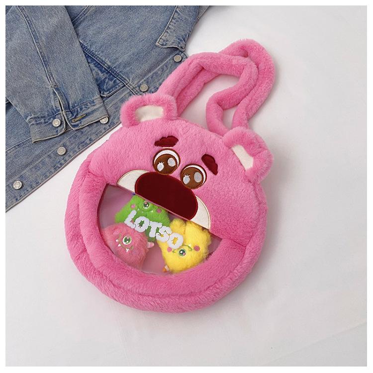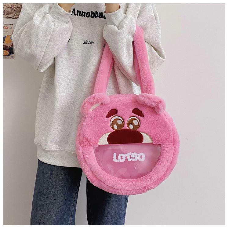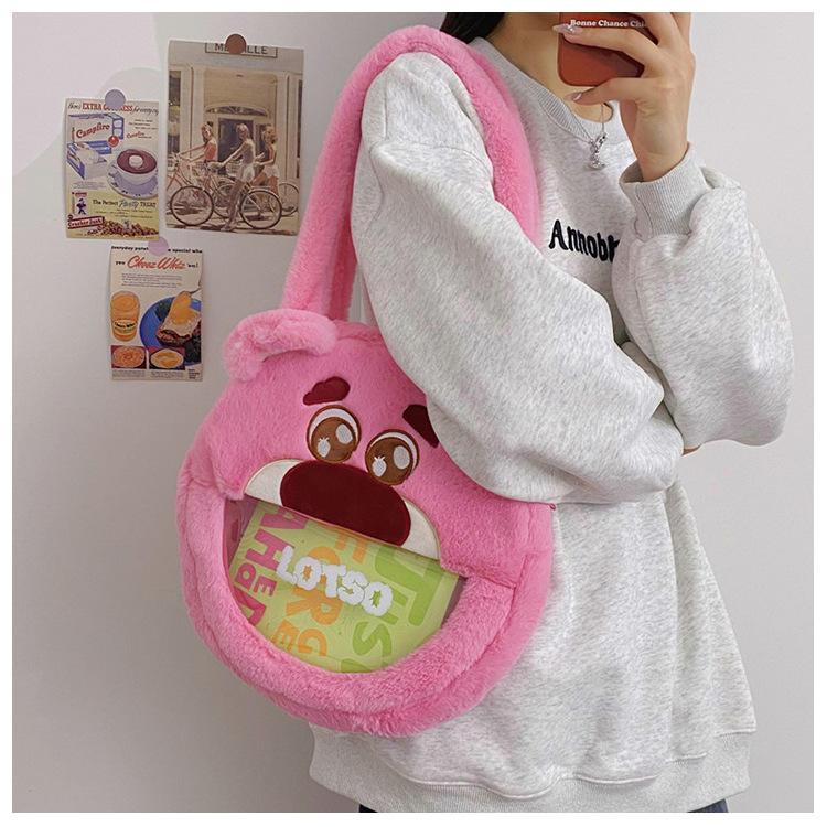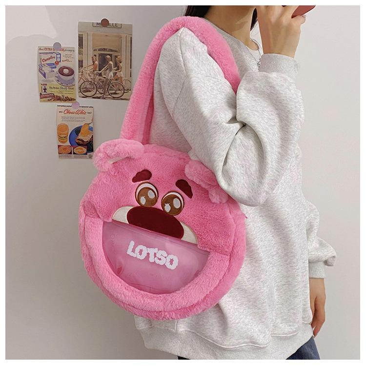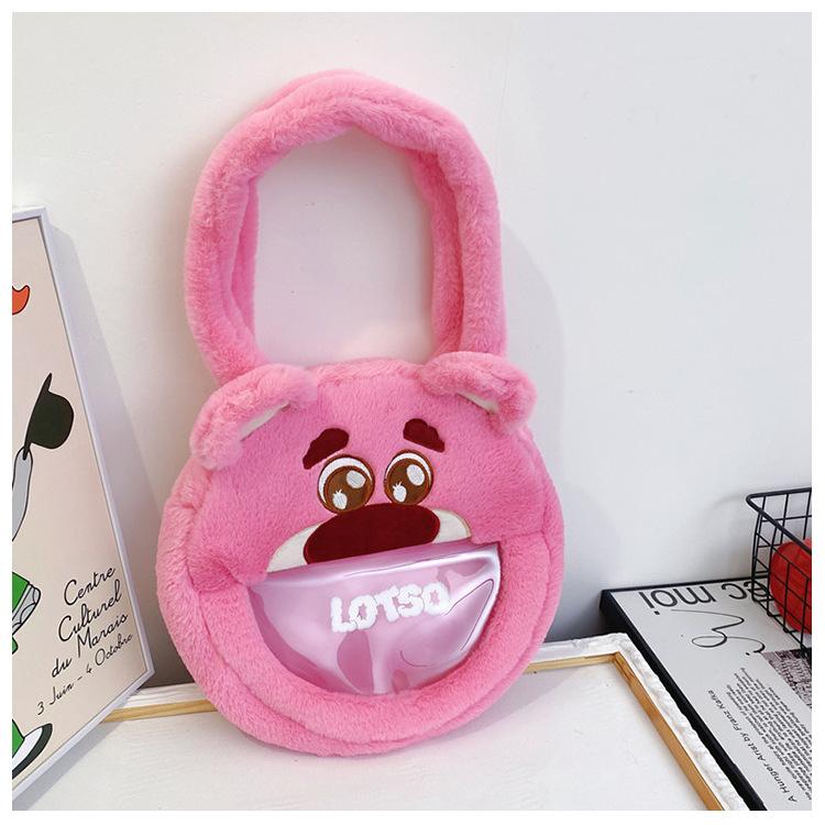Lindo Bolso de Felpa de Dibujos Animados Femenino Oso Fresa Monstruo Bolso para Dolor de Cabeza Grande Bolso Tote de Juguete de Felpa de Gran Capacidad