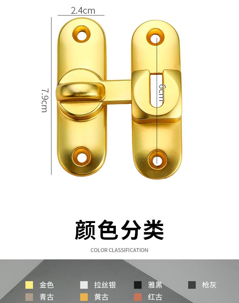 Cerradura de aleación de zinc sin perforaciones, cerradura de 90 grados para puerta de granero, cerradura antirrobo, cerradura con hebilla para puerta, puerta de empuje y tracción.