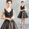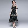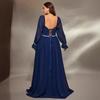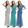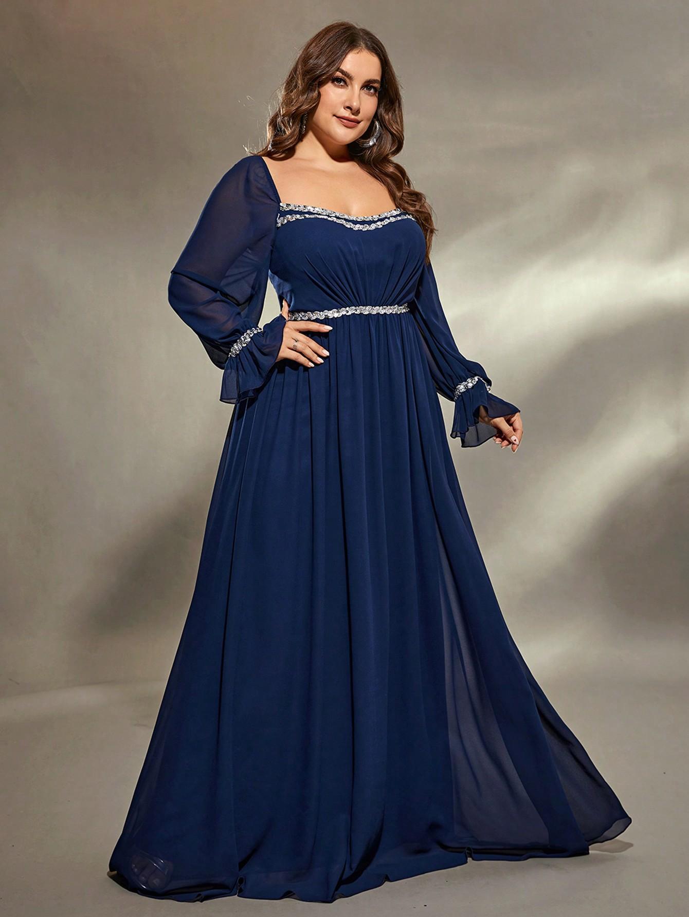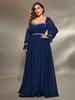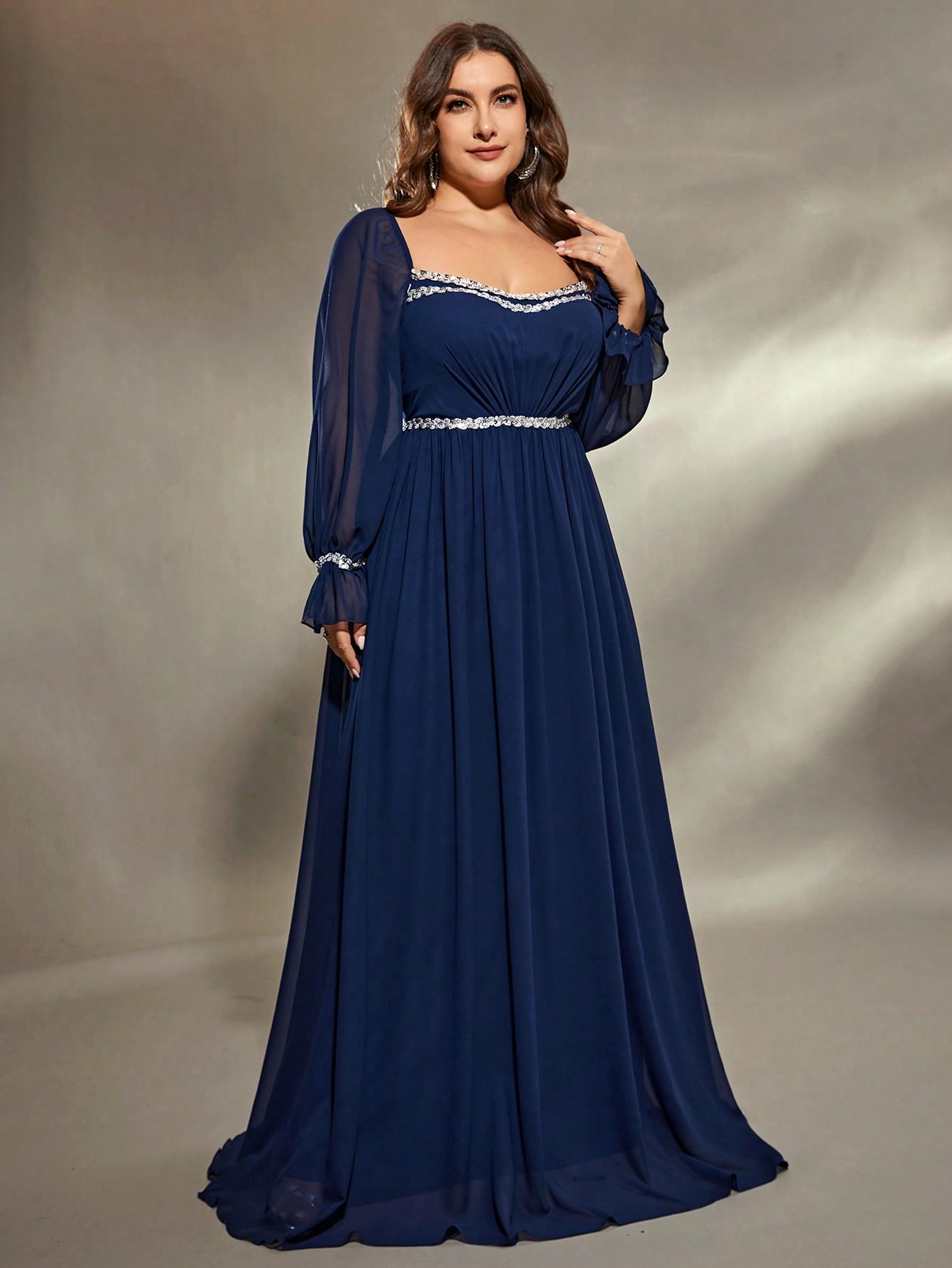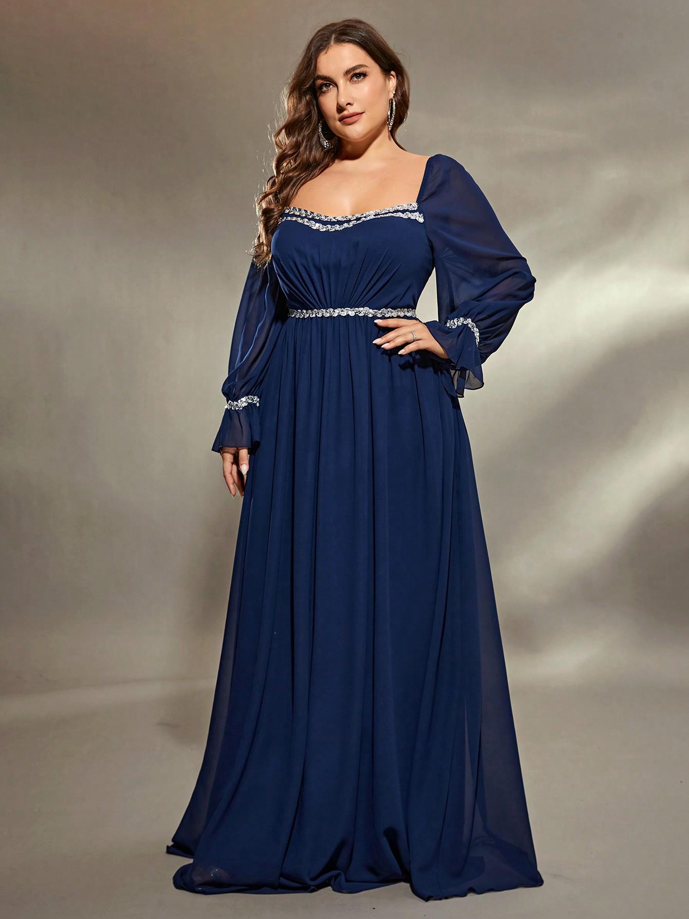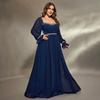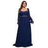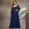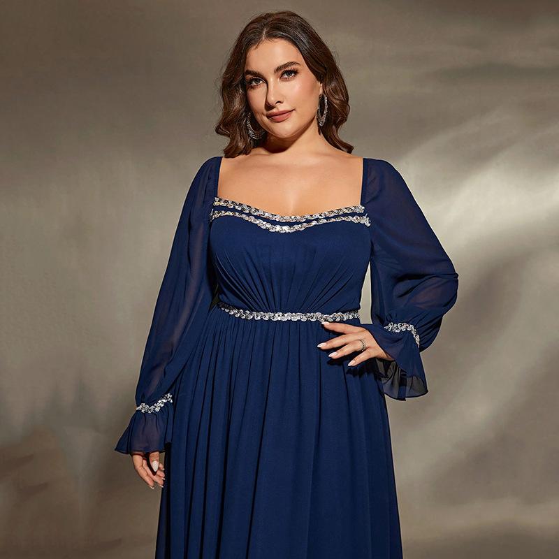 Vestido de noche europeo y americano de talla grande, vestido de noche de gasa gruesa de manga larga, vestido de baile de cuello cuadrado, nuevo verano