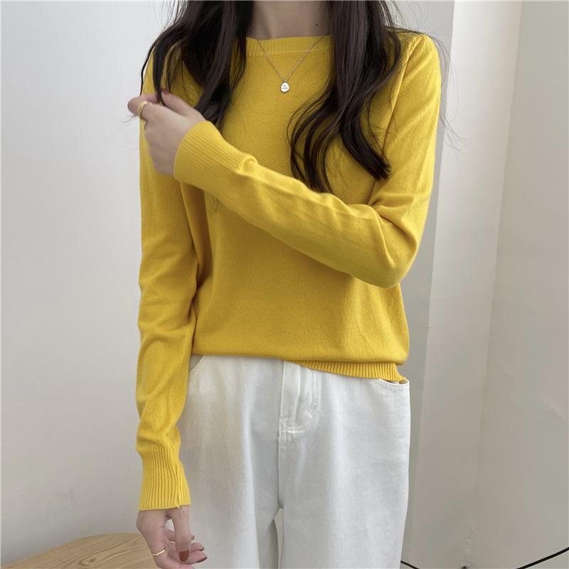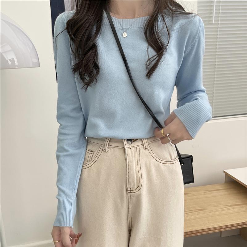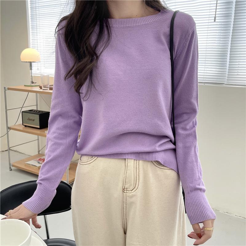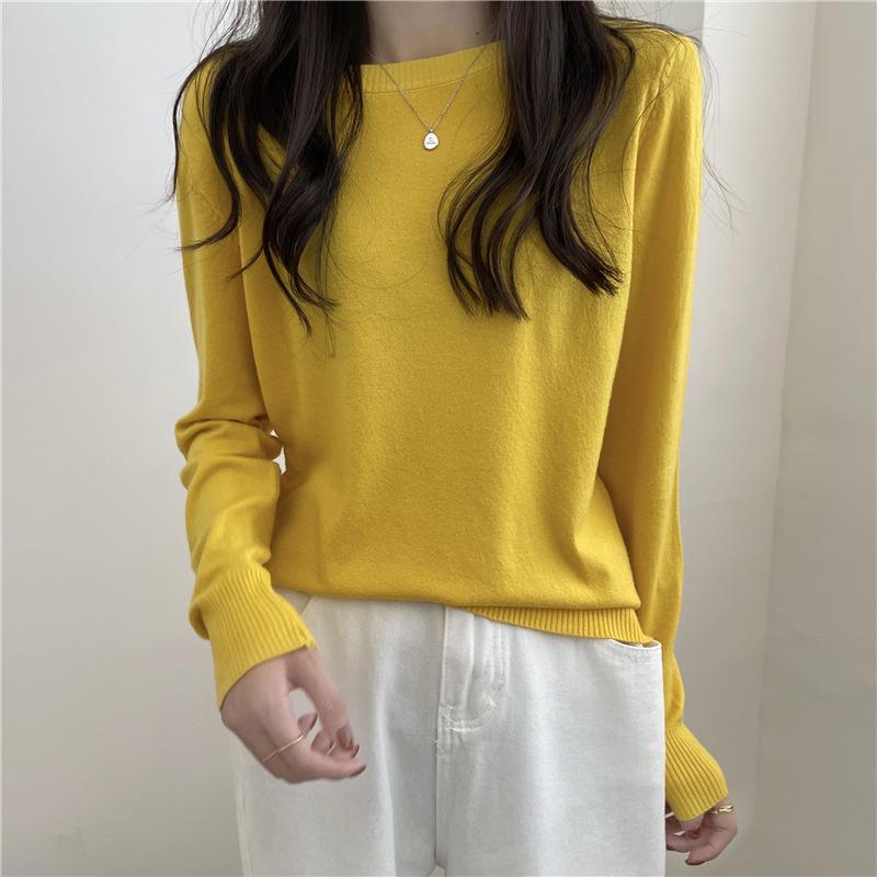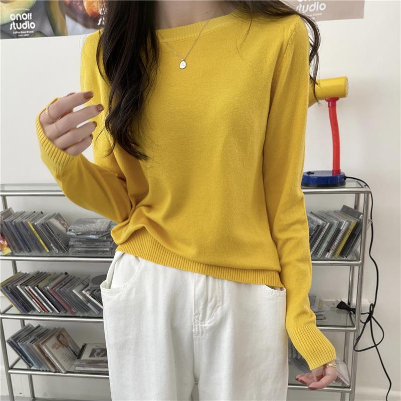 Suéter de punto de manga larga interior para mujer, novedad de primavera 2024, suelto, adelgazante, estilo suave, color caramelo.