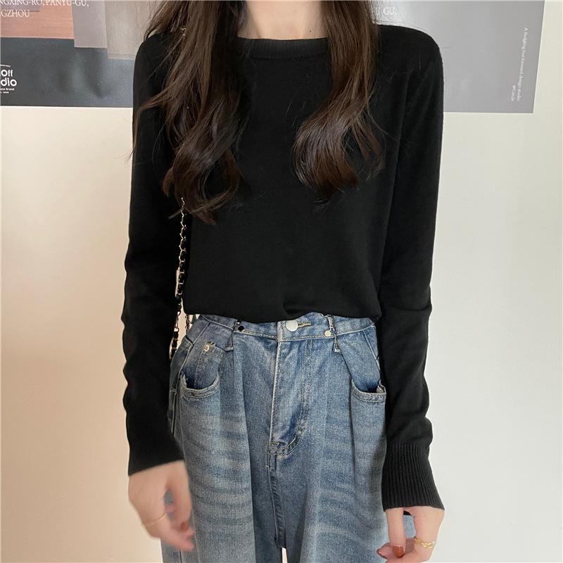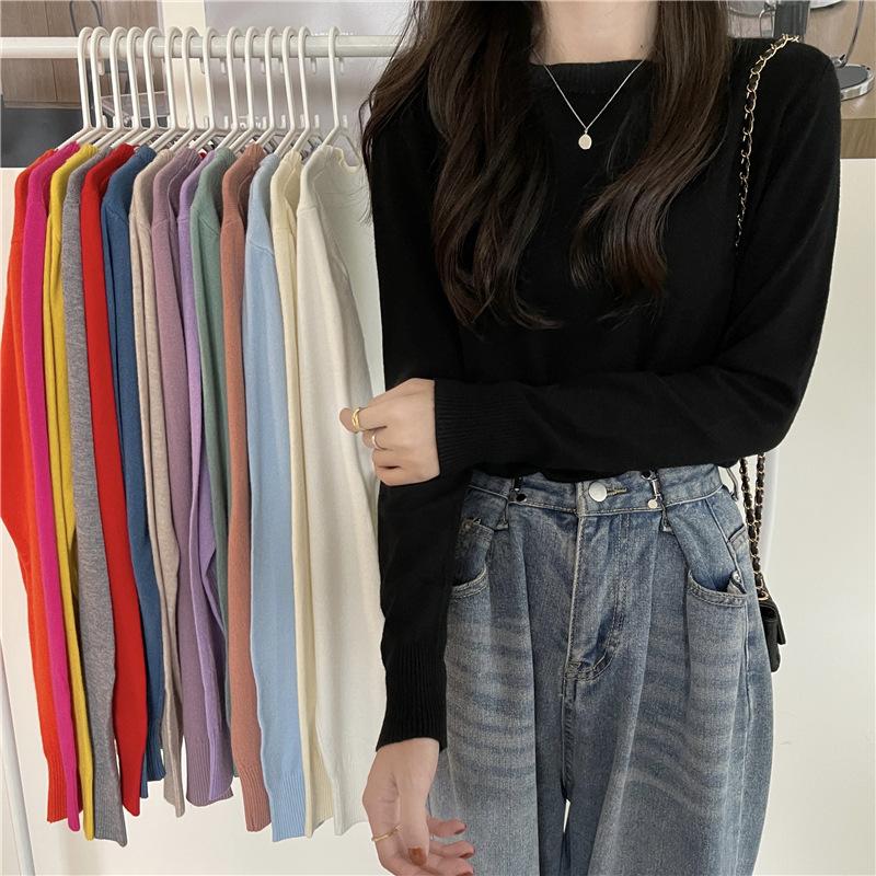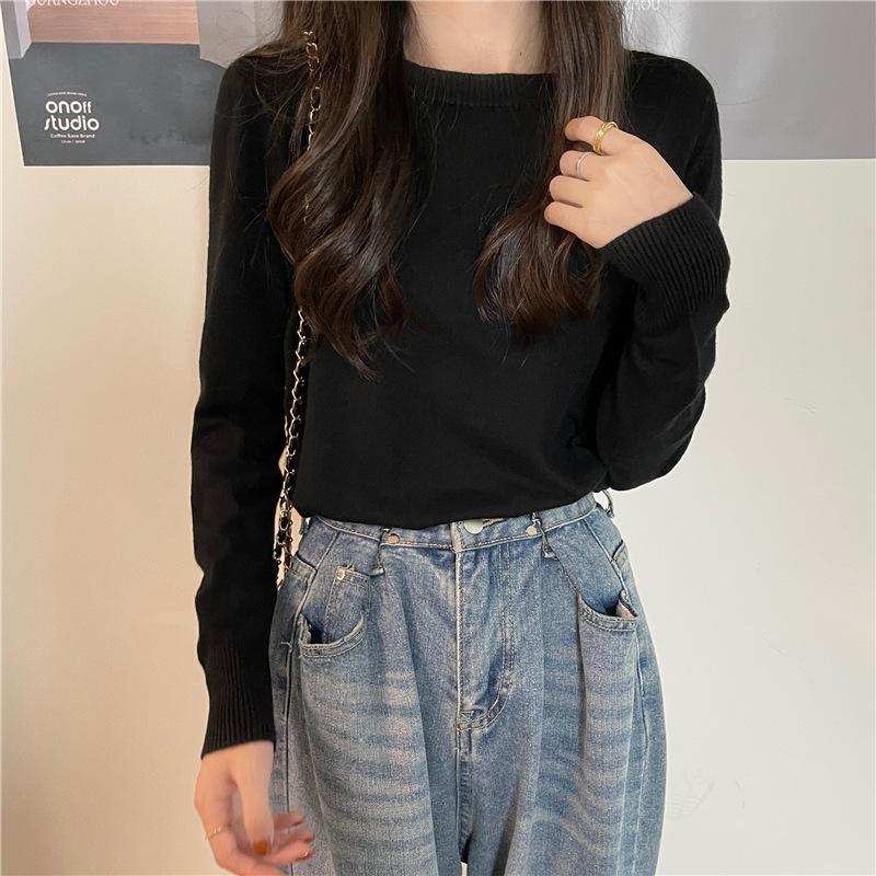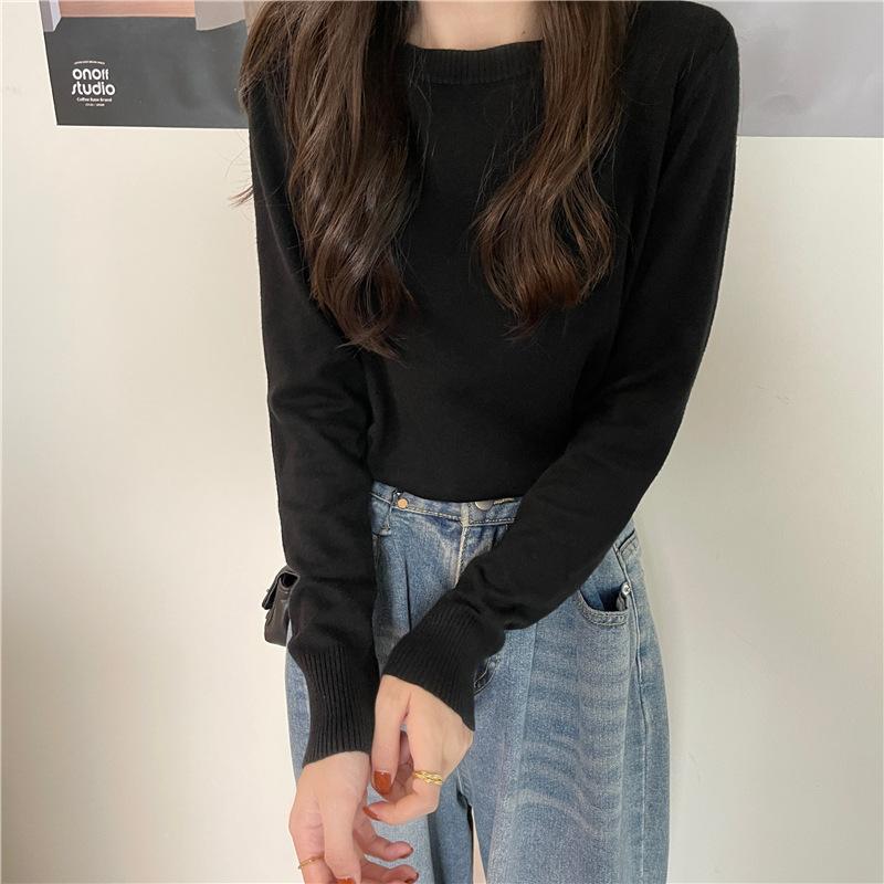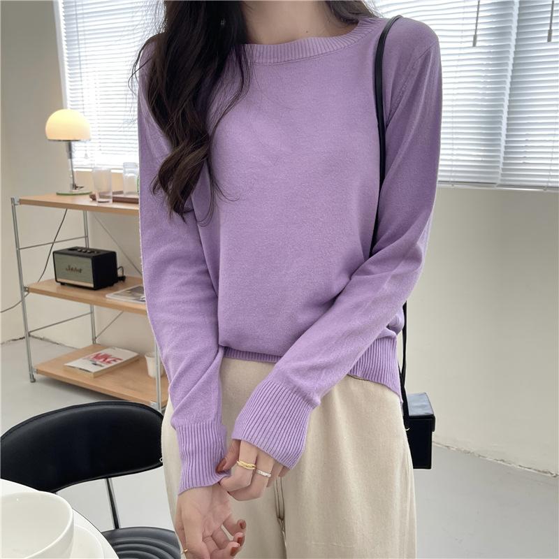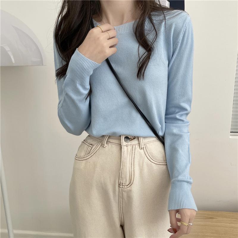 Suéter de punto de manga larga interior para mujer, novedad de primavera 2024, suelto, adelgazante, estilo suave, color caramelo.