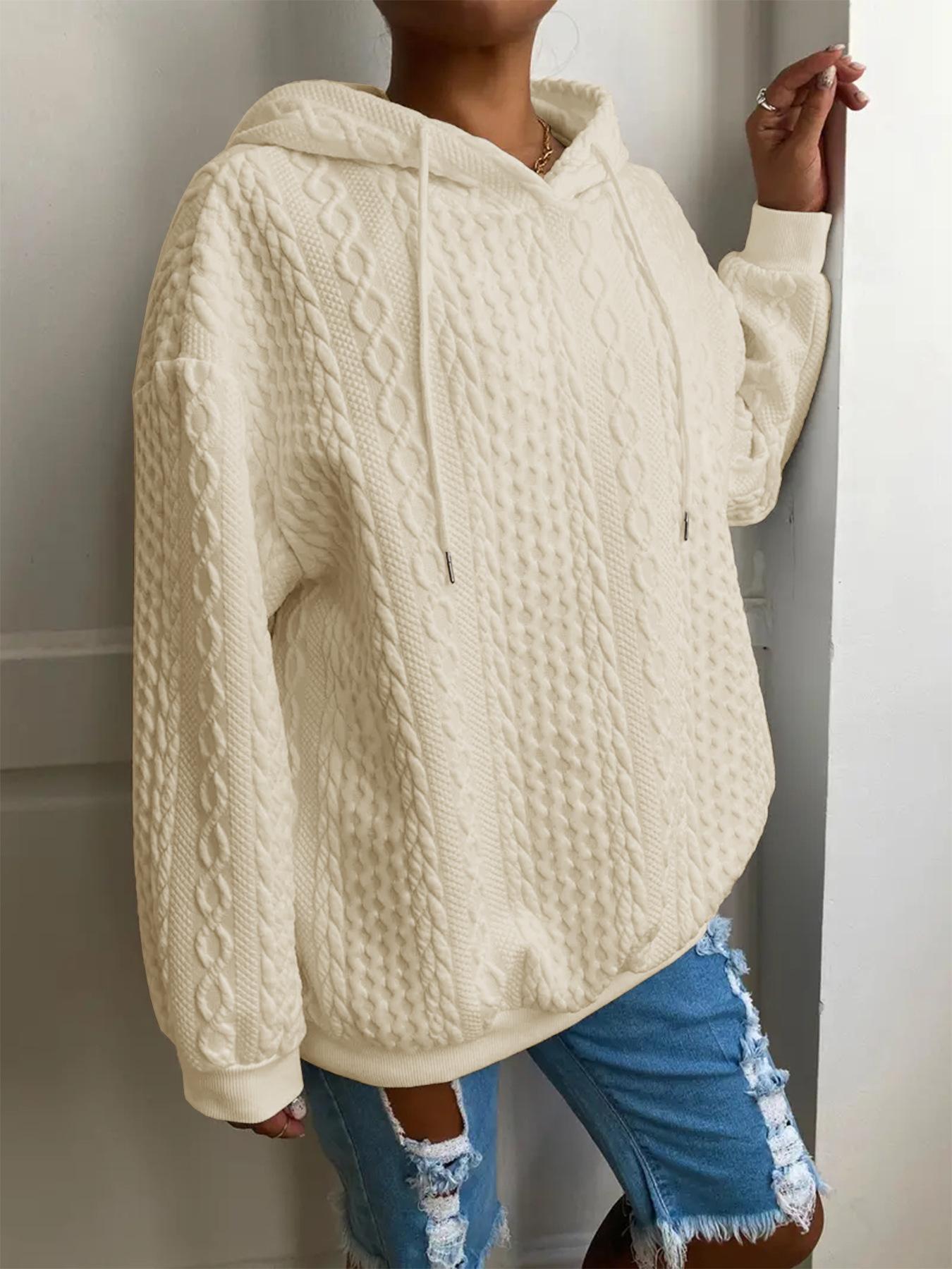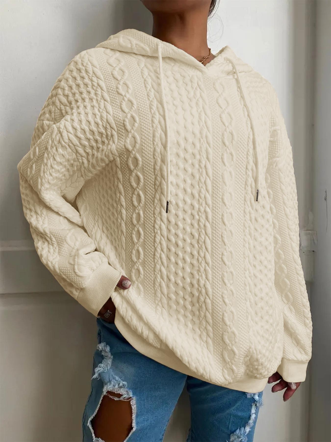 En stock al por mayor Amazon nuevo suéter de punto casual jacquard holgado con capucha para mujer europeo y americano de moda de manga larga