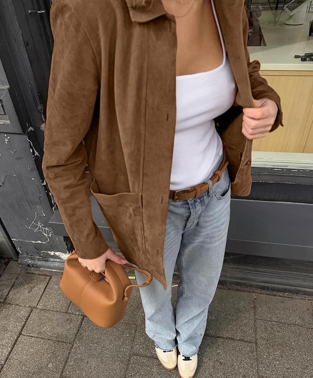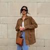 Chaqueta Maillard informal holgada de ante estilo británico, moda europea y americana de otoño 2024, nuevo traje de terciopelo esmerilado