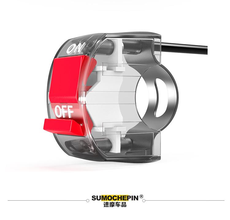 Compra Productos para motocicleta de velocidad faro de motocicleta botón de interruptor de luz de adelantamiento coche eléctrico coche modificado manillar color interruptor transparente al por mayor en Joom.pro
