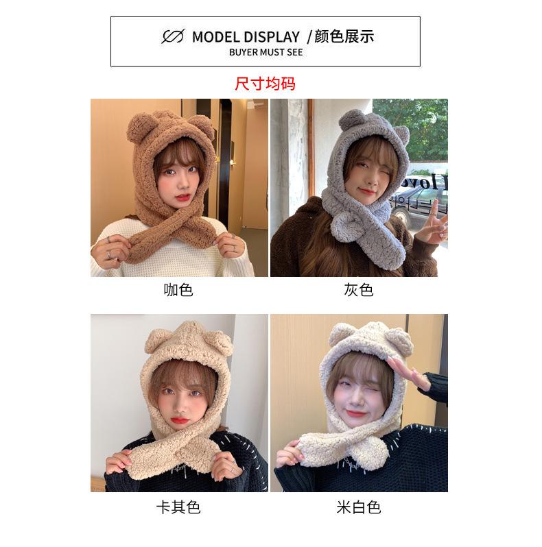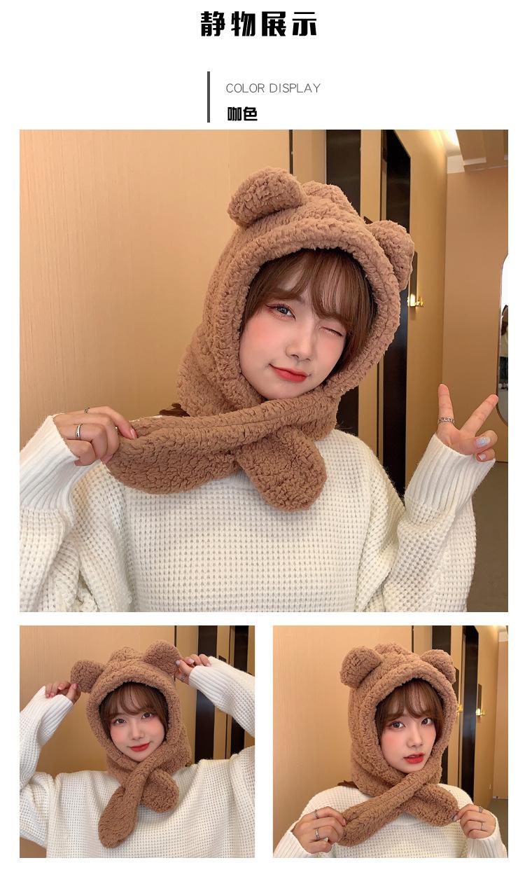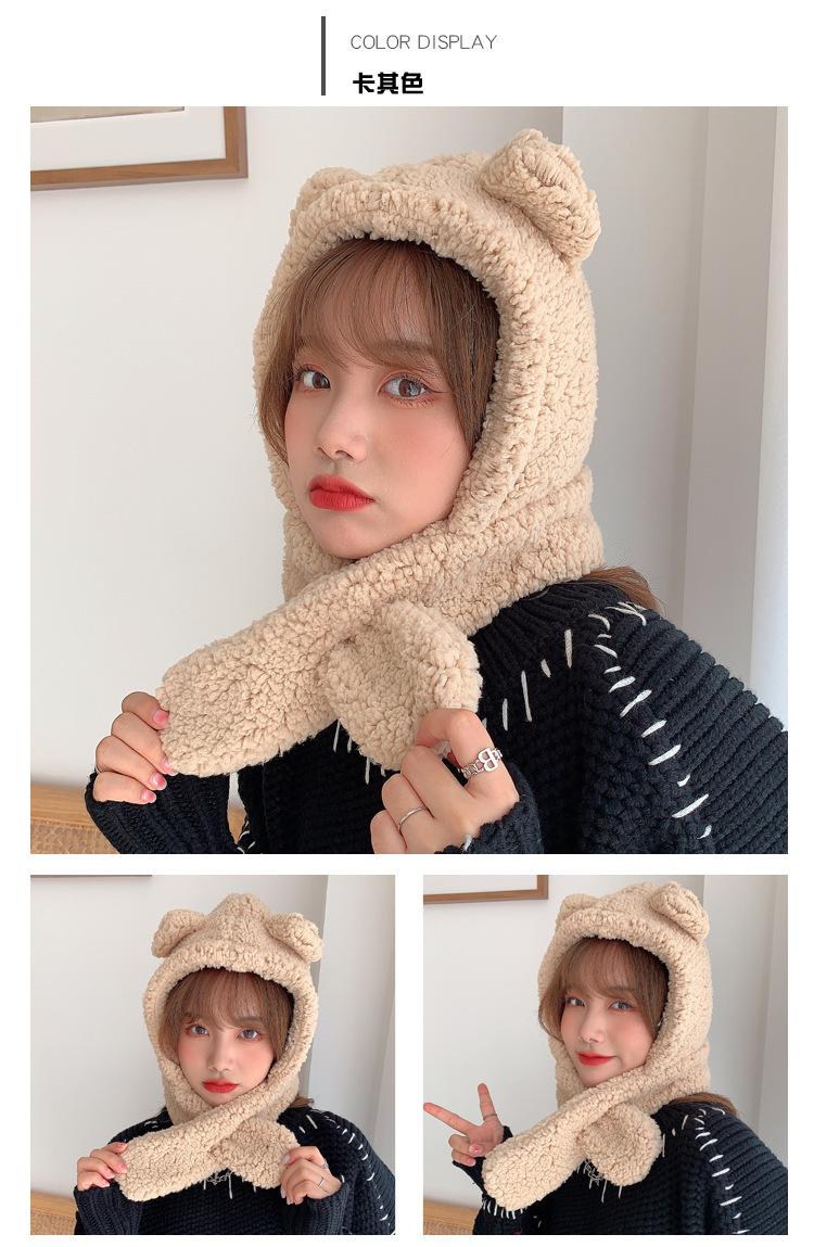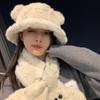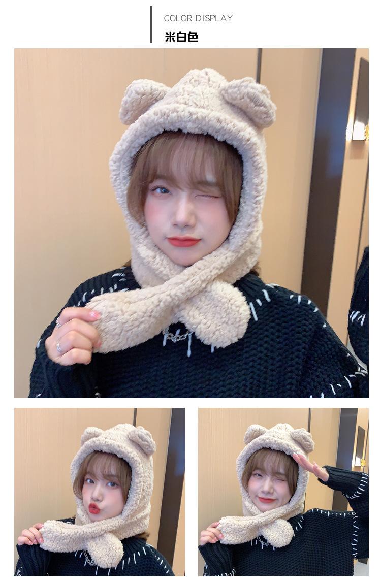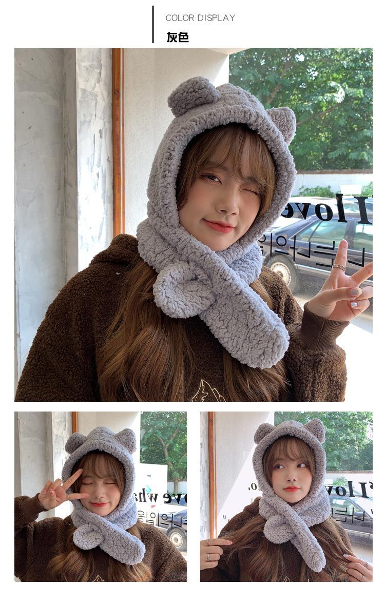 Gorro de peluche de oso para otoño e invierno, bufanda, gorro todo en uno, gorro coreano de moda para mujer, gorro cálido para montar al aire libre, bonito gorro de algodón resistente al frío.