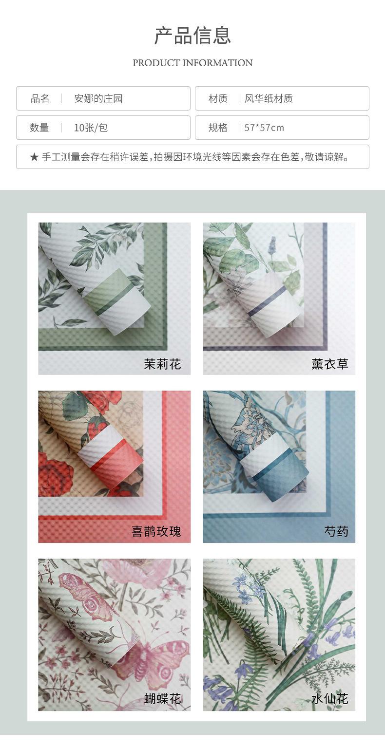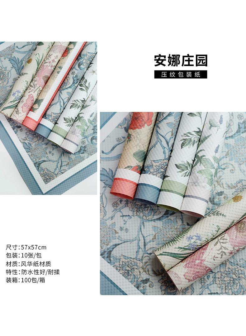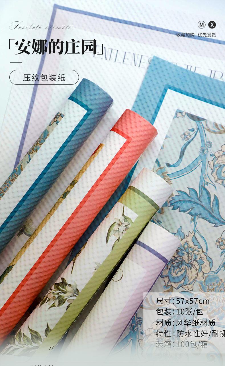 Papel de Envoltura de Flores Anna Manor Venta al por Mayor Día de San Valentín Serie Repujada Papel de Envoltura de Flores Embalaje de Ramo Papel Estilo Floral