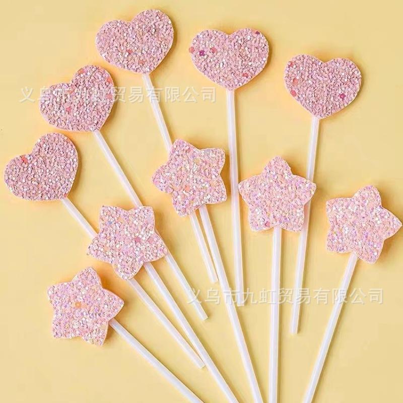 Complemento para decoración de pasteles, purpurina, estrella, estrella, rosa, amor, degradado, tarjeta de color, bandera de cumpleaños, accesorios