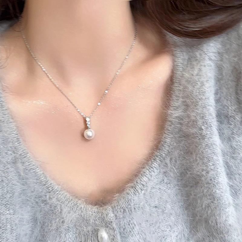 Collar con colgante de perlas para mujer 2023, nuevo, popular, ligero, de lujo, nicho, cadena de clavícula de alto sentido para novia