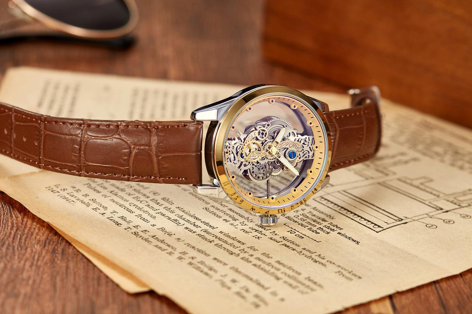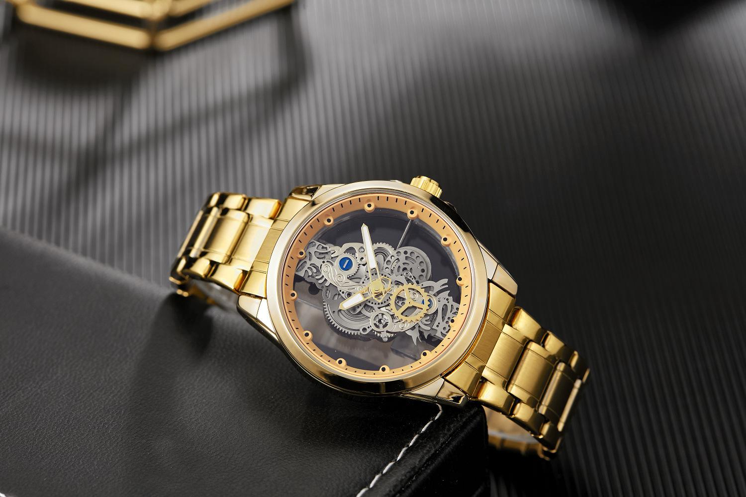Reloj mecánico automático hueco transparente de doble cara para hombre, reloj de cuarzo luminoso resistente al agua para hombre, nuevo Douyin transfronterizo