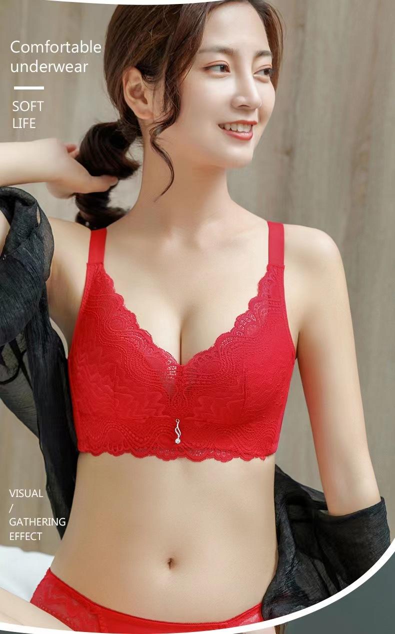 Ropa interior para amantes del maquillaje rojo, de alta calidad, de una sola pieza, sin aro de acero, cómodo sujetador ajustable de látex.