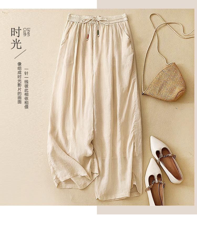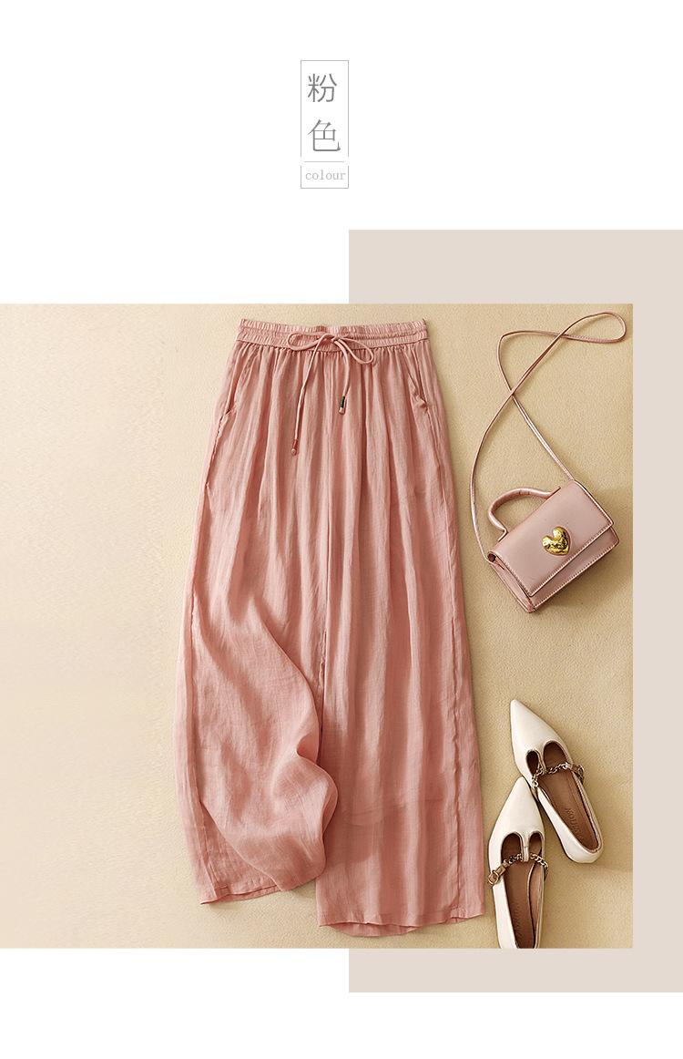 Compra Foto Real de Pantalones Rectos Simples de Color Puro Casuales y Literarios de Primavera y Verano 2025 con Cintura Elástica y Pierna Ancha al por mayor en Joom.pro