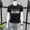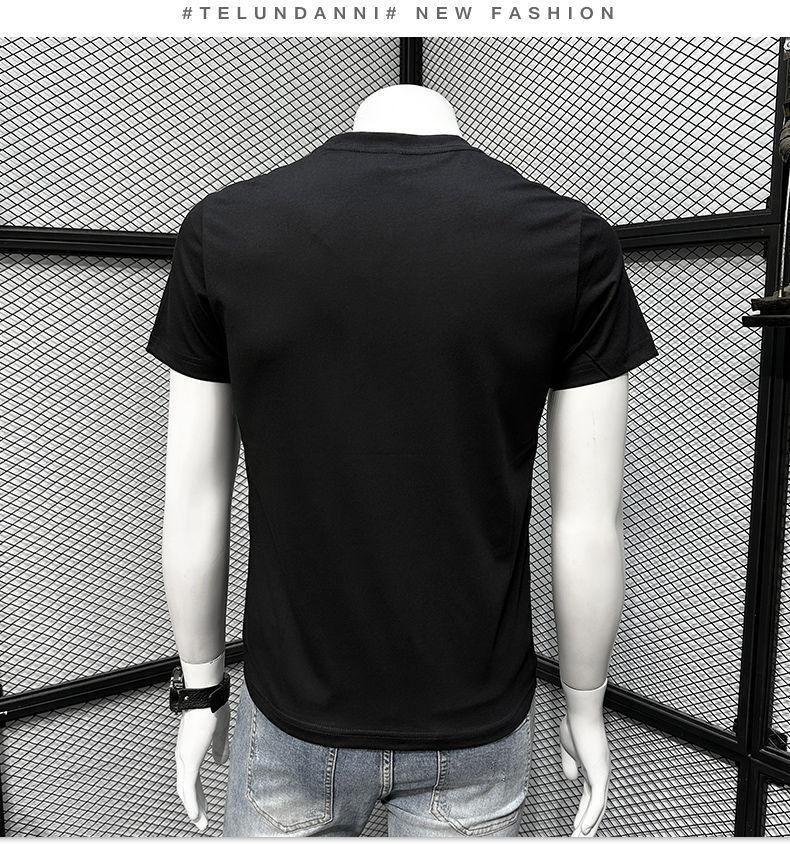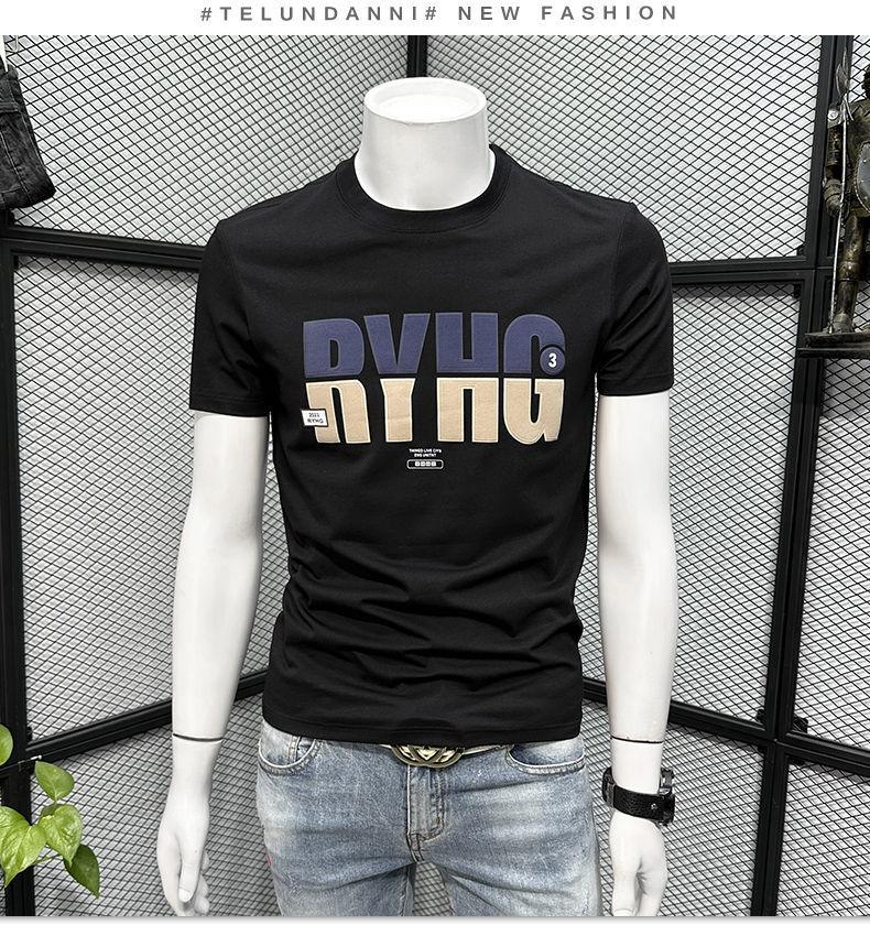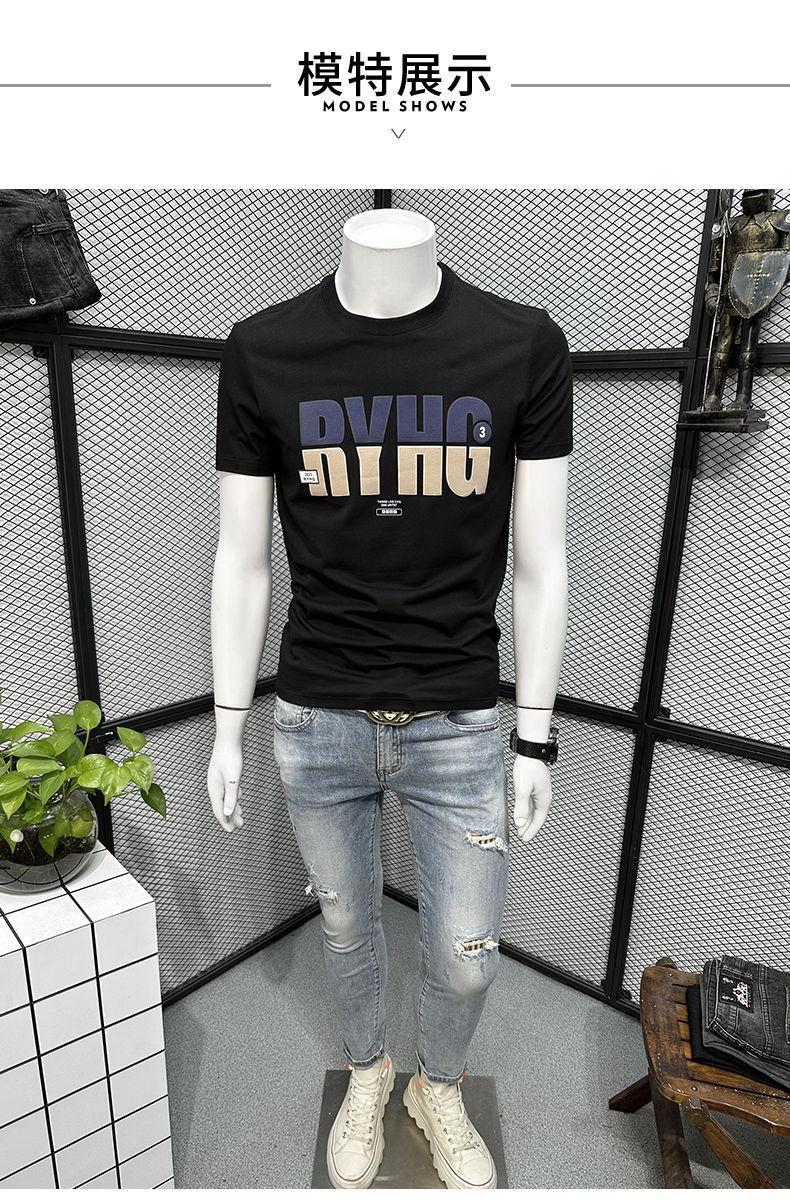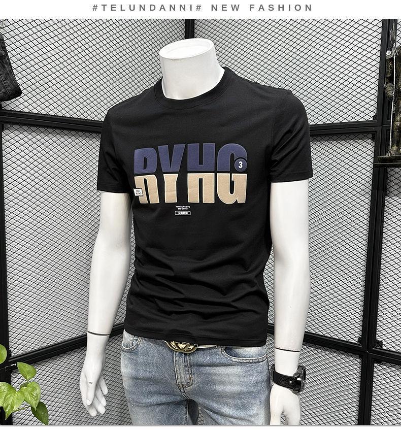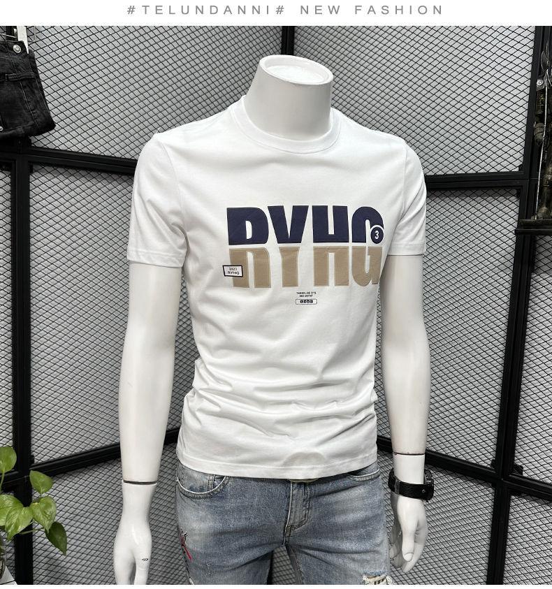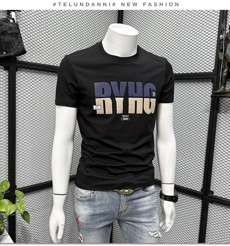 Camiseta de manga corta para hombre 2023, marca de moda, informal, cuello redondo, talla grande, nueva camiseta estampada de verano a la moda y ajustada.