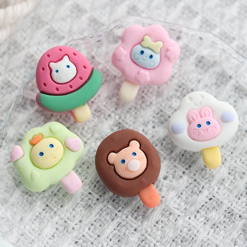 Resin: watermelon ice cream Meow 2.0x2.1cm, Resin: chocolate ice cream bear 1.5x2.2cm, Resin: Cream ice cream ...