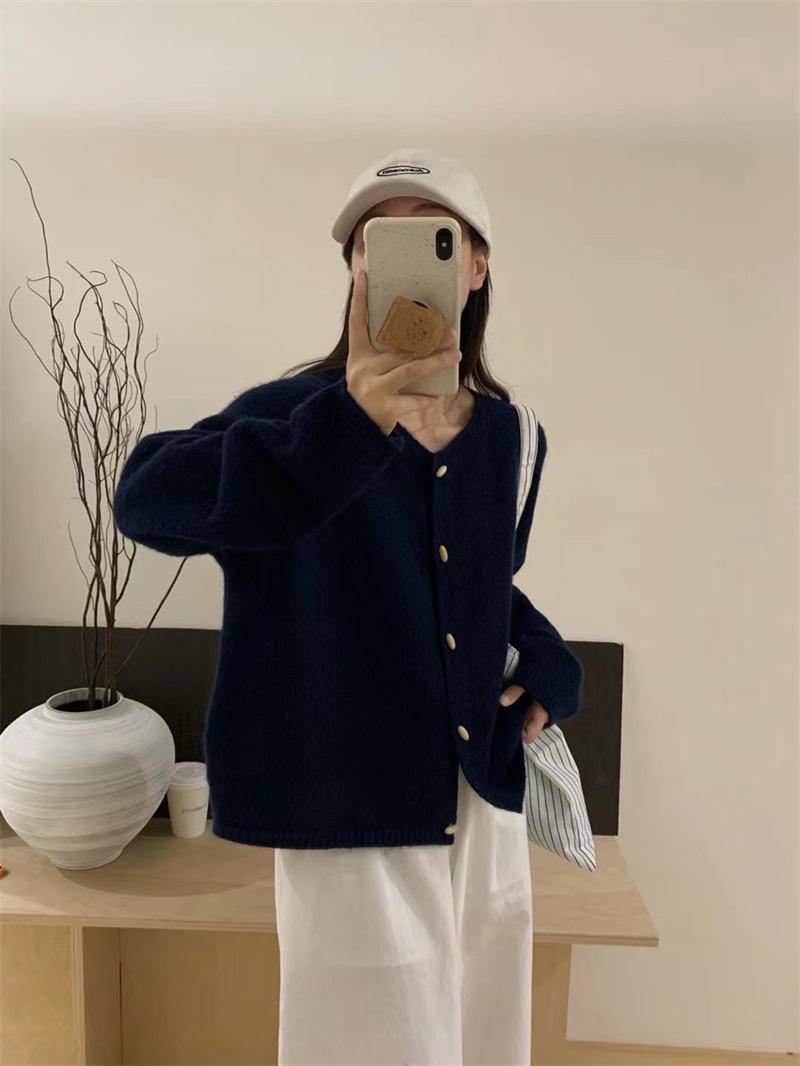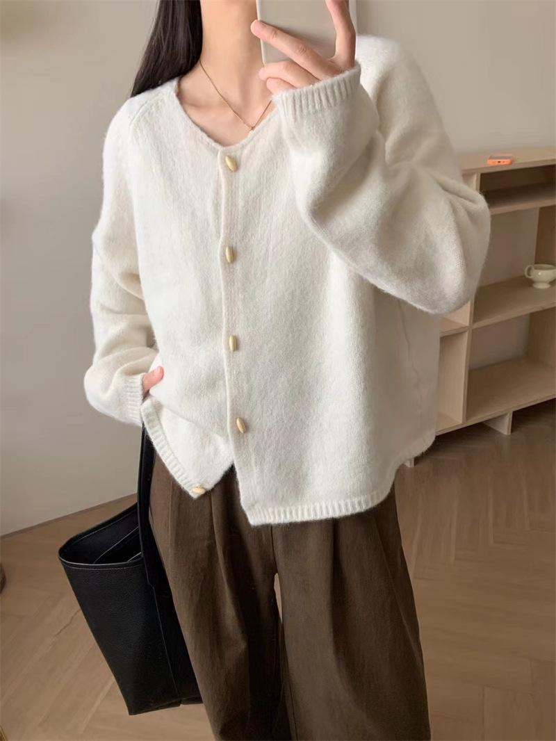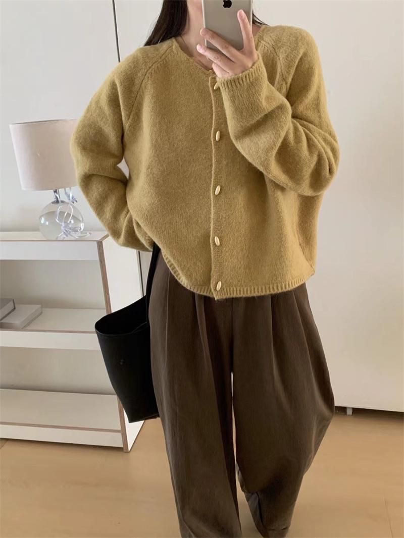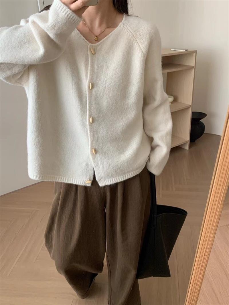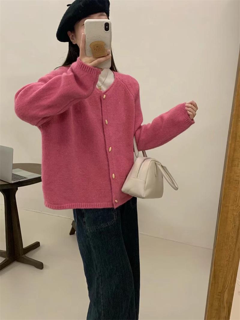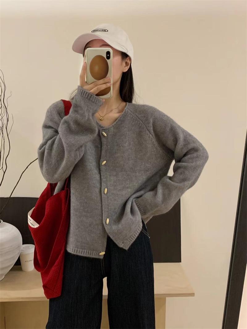 Cárdigan de punto para mujer, otoño e invierno 2024, nuevo estilo coreano, sencillo, holgado, combinable, con cuello redondo, suave y encerado.