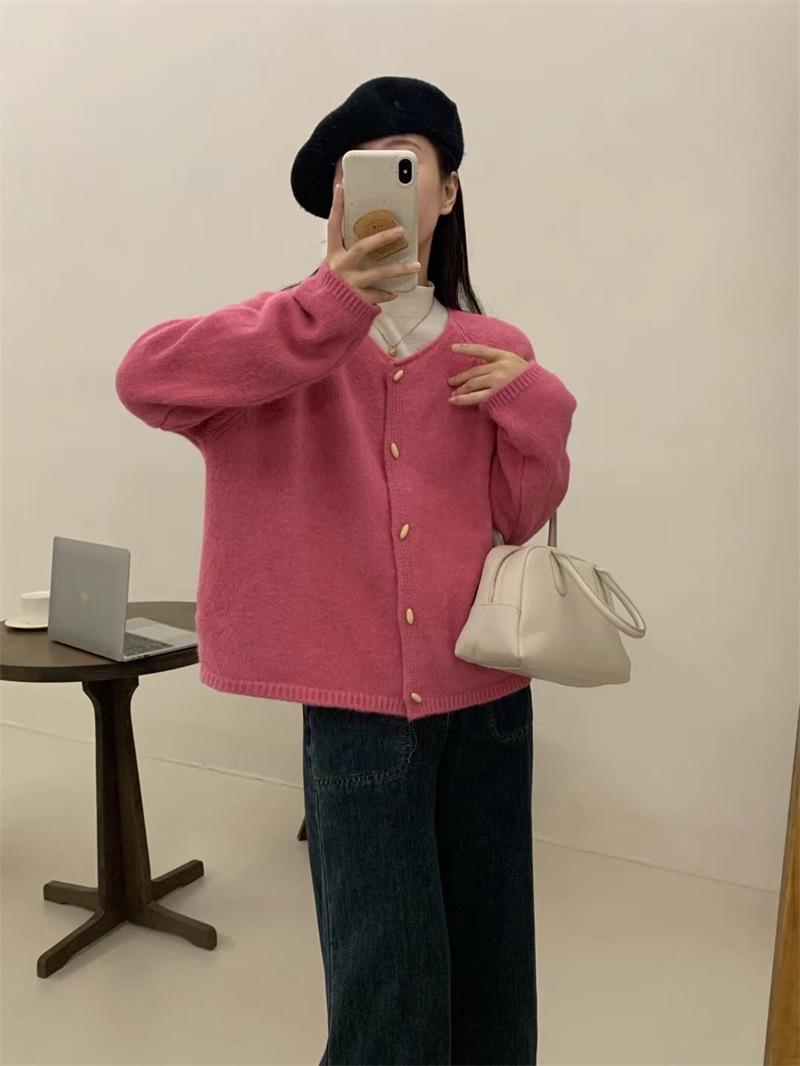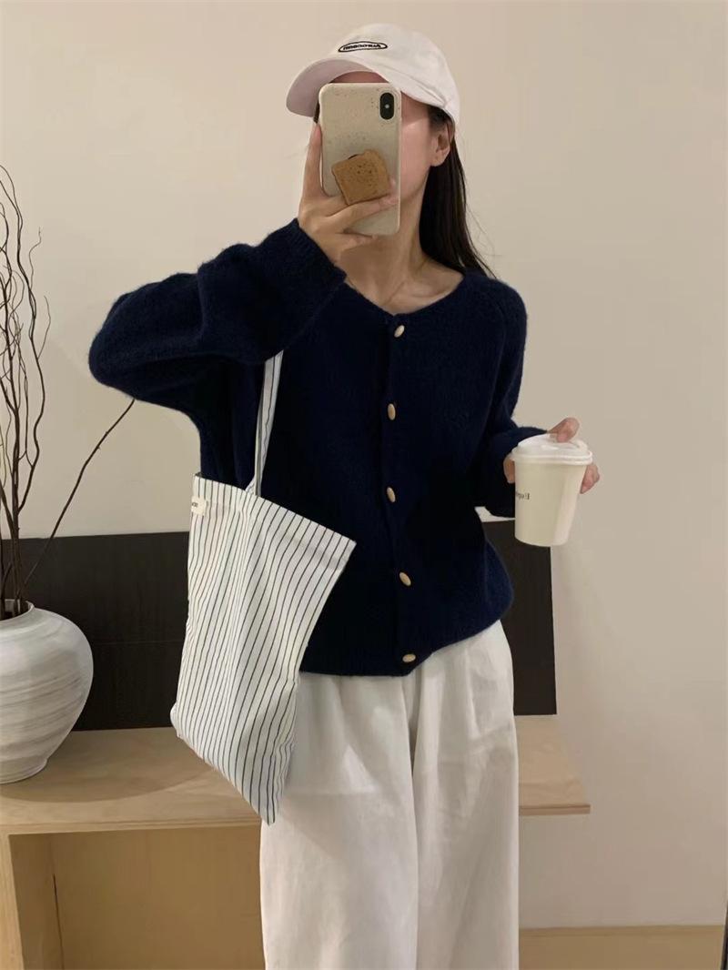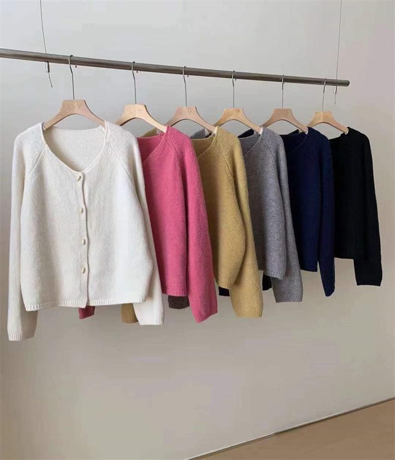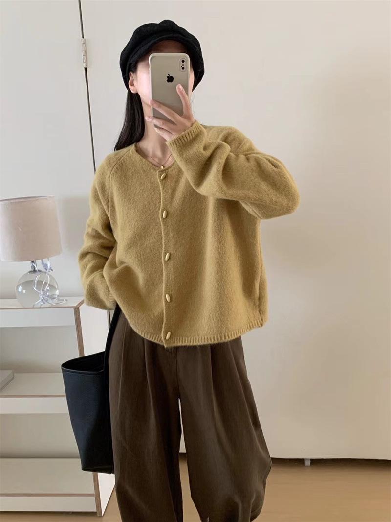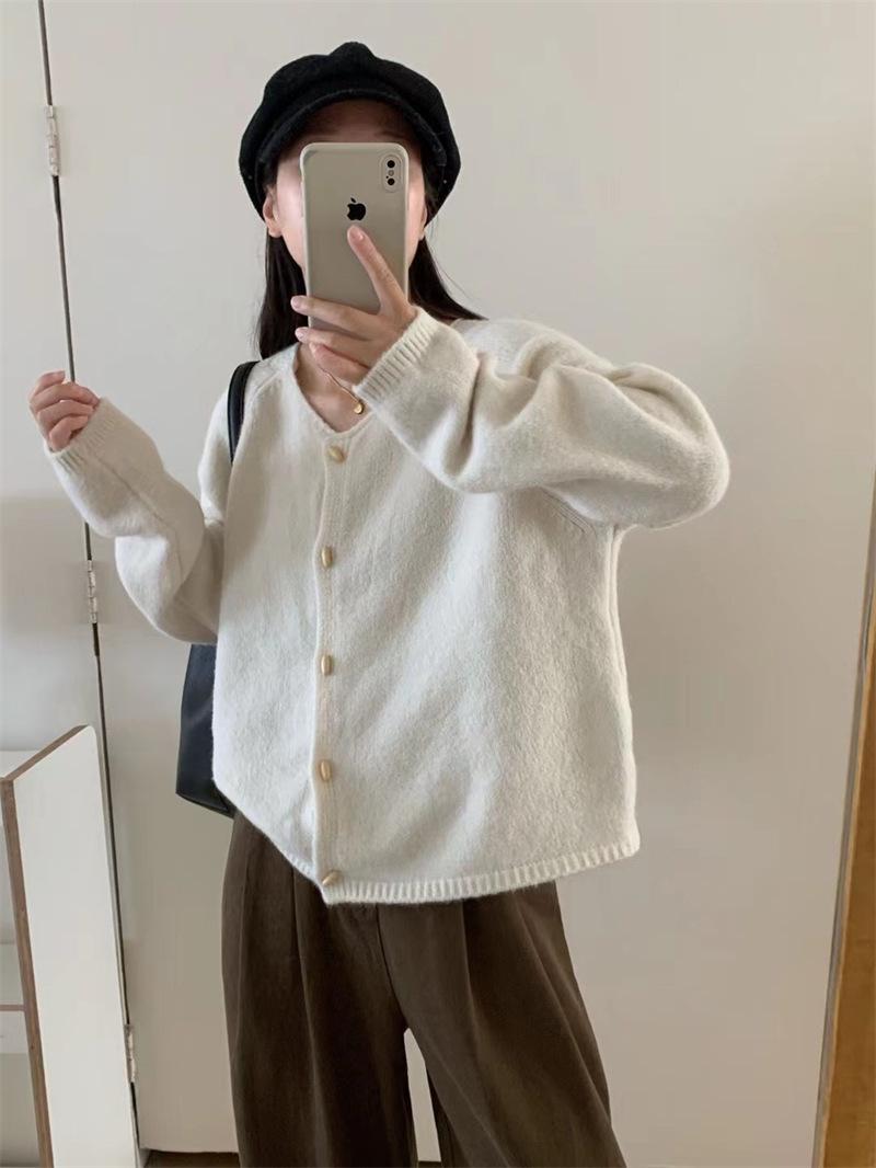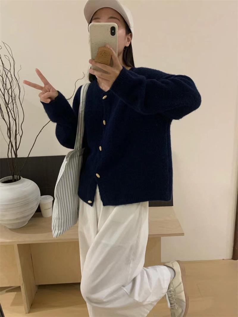 Cárdigan de punto para mujer, otoño e invierno 2024, nuevo estilo coreano, sencillo, holgado, combinable, con cuello redondo, suave y encerado.