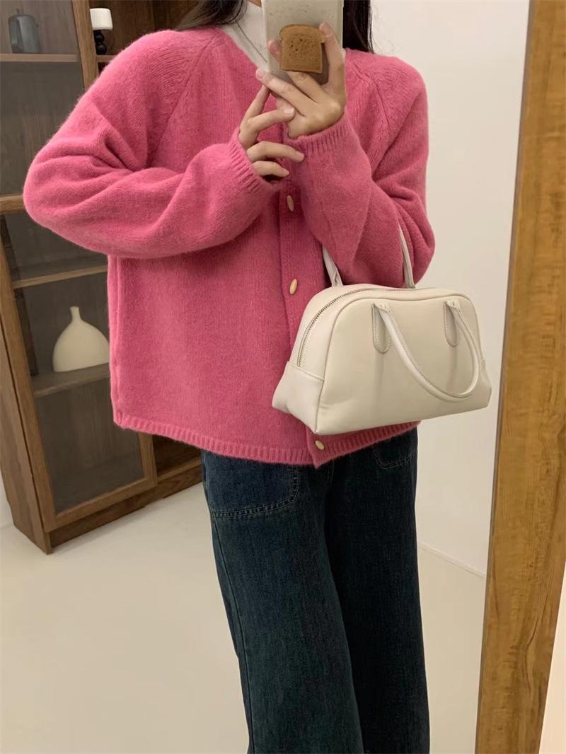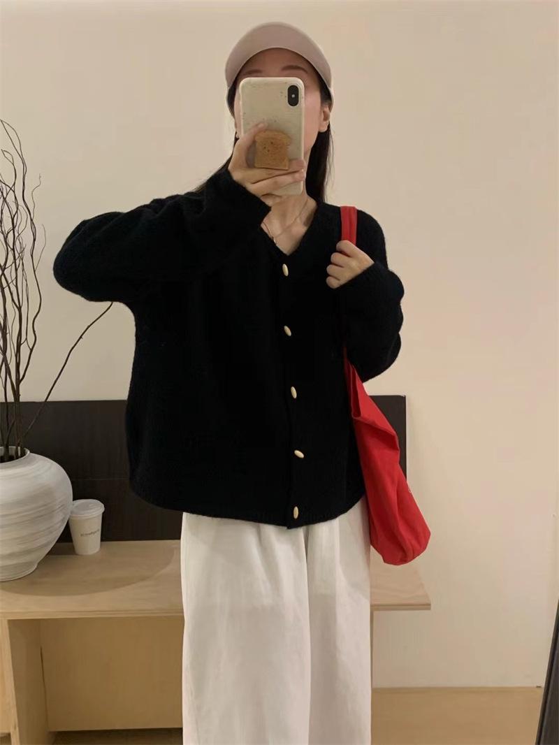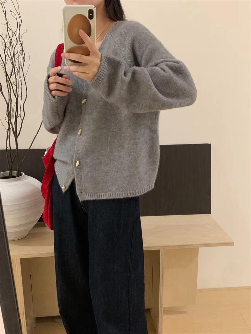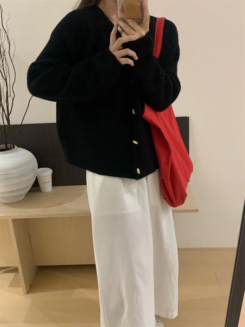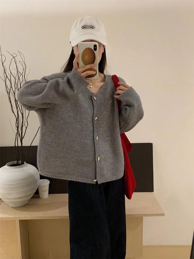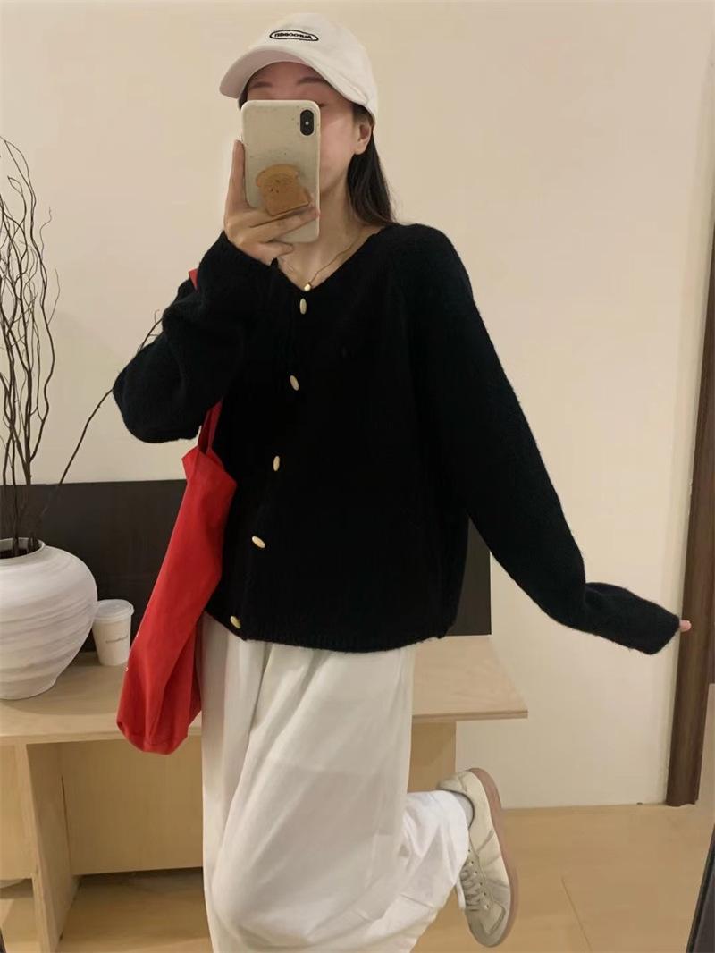 Cárdigan de punto para mujer, otoño e invierno 2024, nuevo estilo coreano, sencillo, holgado, combinable, con cuello redondo, suave y encerado.