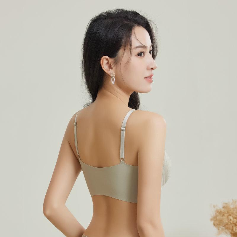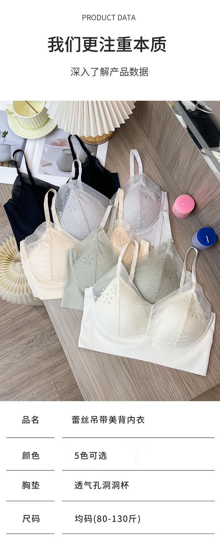 Nueva ropa interior de estilo francés con espalda descubierta y copa fija para mujer, camisola de seda helada con encaje, top de tubo, sujetador sexy con espalda descubierta
